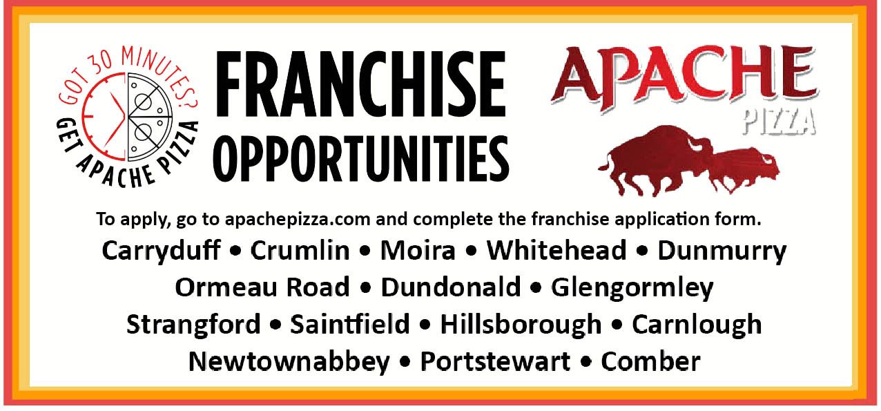 Applicants can apply online at www.apachepizza.com or by contacting Paul Walker, Franchise Business Leader for Northern Ireland at paulwalker@apache.ie