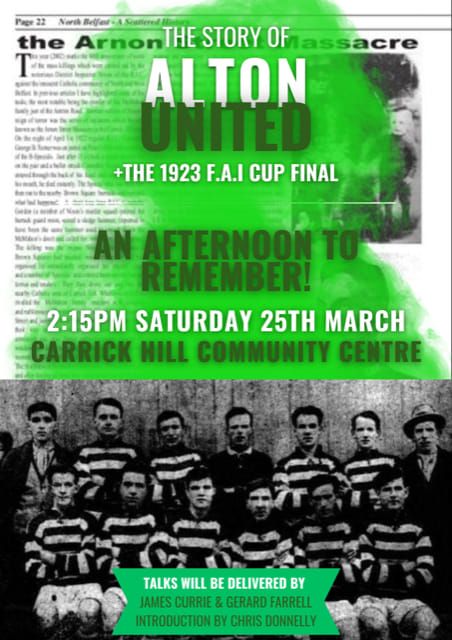 "The story of Alton United is entwined within the story of how the Belfast pogroms of the early 1920s severely impacted upon working class nationalist communities in the city," he said.