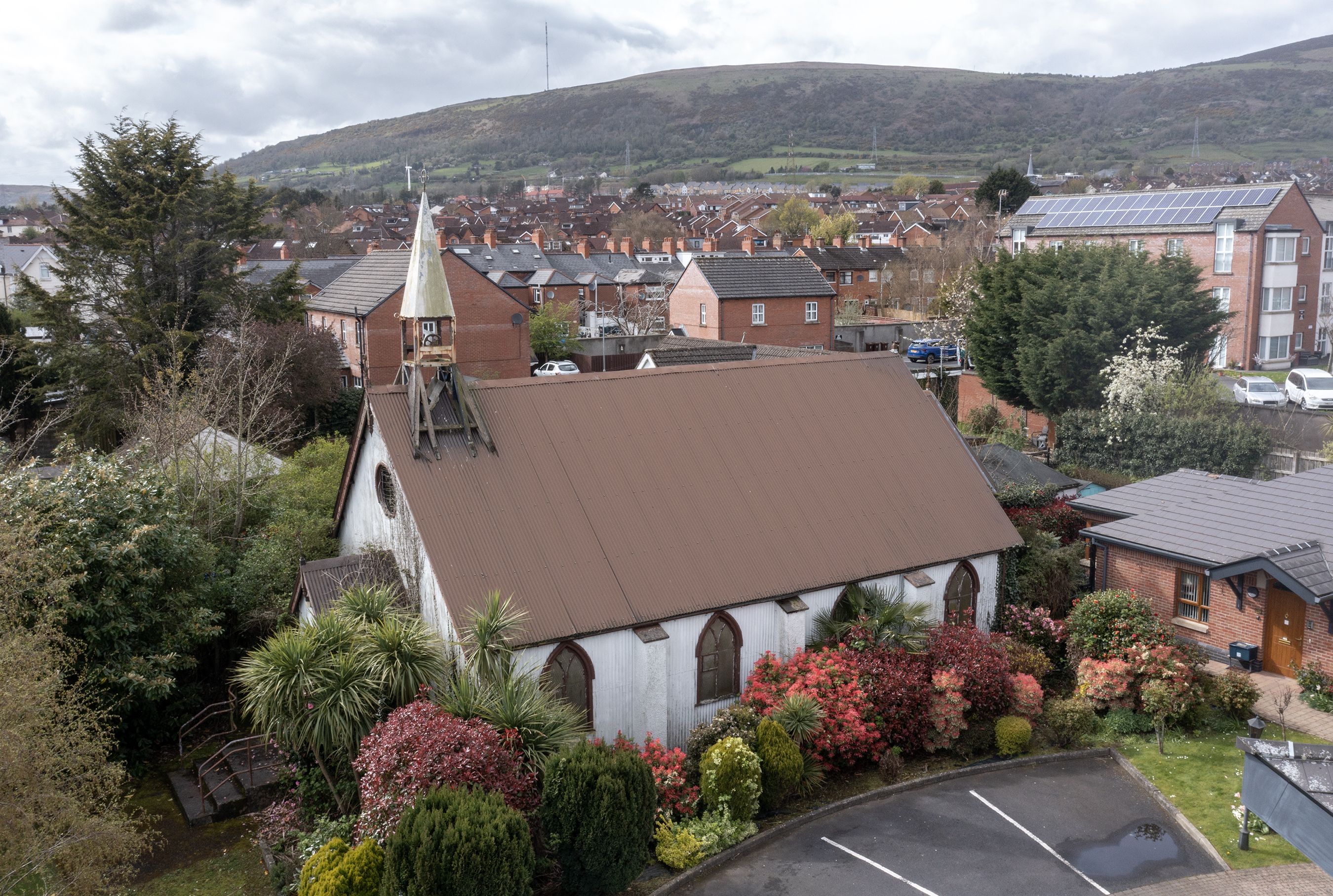 Tucked away beside the newer St Matthias’ Church on the Glen Road, the distinctive prefabricated structure has stood closed for more than 25 years.