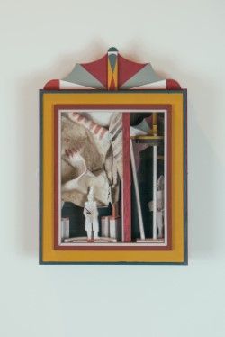 Over time the technique changes, plaster casting of various body parts and dreamlike bits and pieces, memories of dark wooded furniture, vanity cases and for the series made from the experience in Rome, some pieces which echo triptych alter pieces.