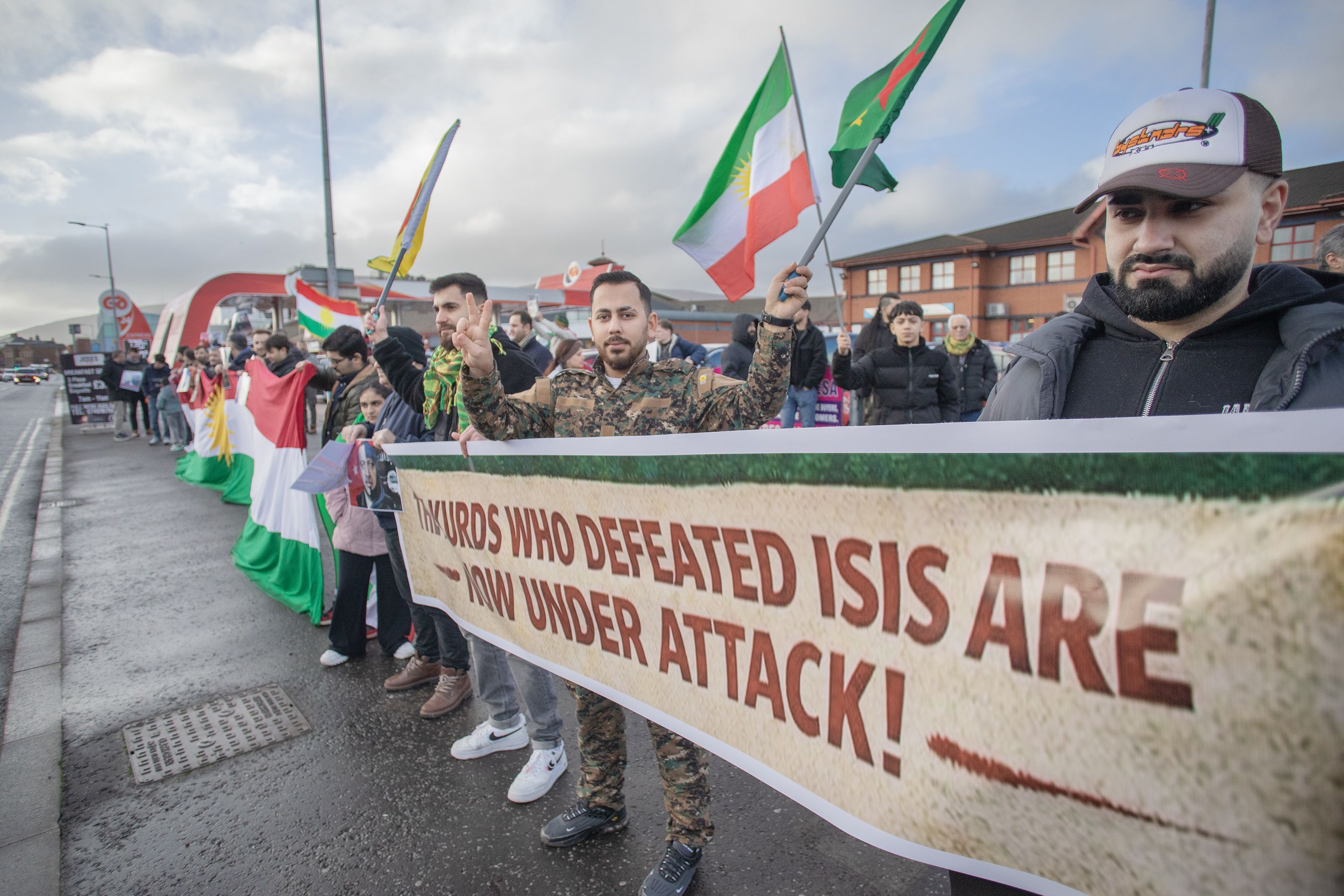 THE Kurdish community in Belfast came together on Wednesday afternoon for a solidarity protest with those living in the under siege Rojava region in Syria.