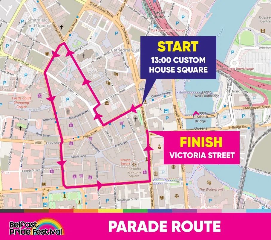 The Belfast Pride Parade is the main event in the LGBTQIA+ calendar, a major city event and the biggest cross-community parade in Belfast. It is a protest and a celebration, a call for equality, a stand for solidarity and a celebration of the lives of LGBTQIA+ people in Belfast and beyond.