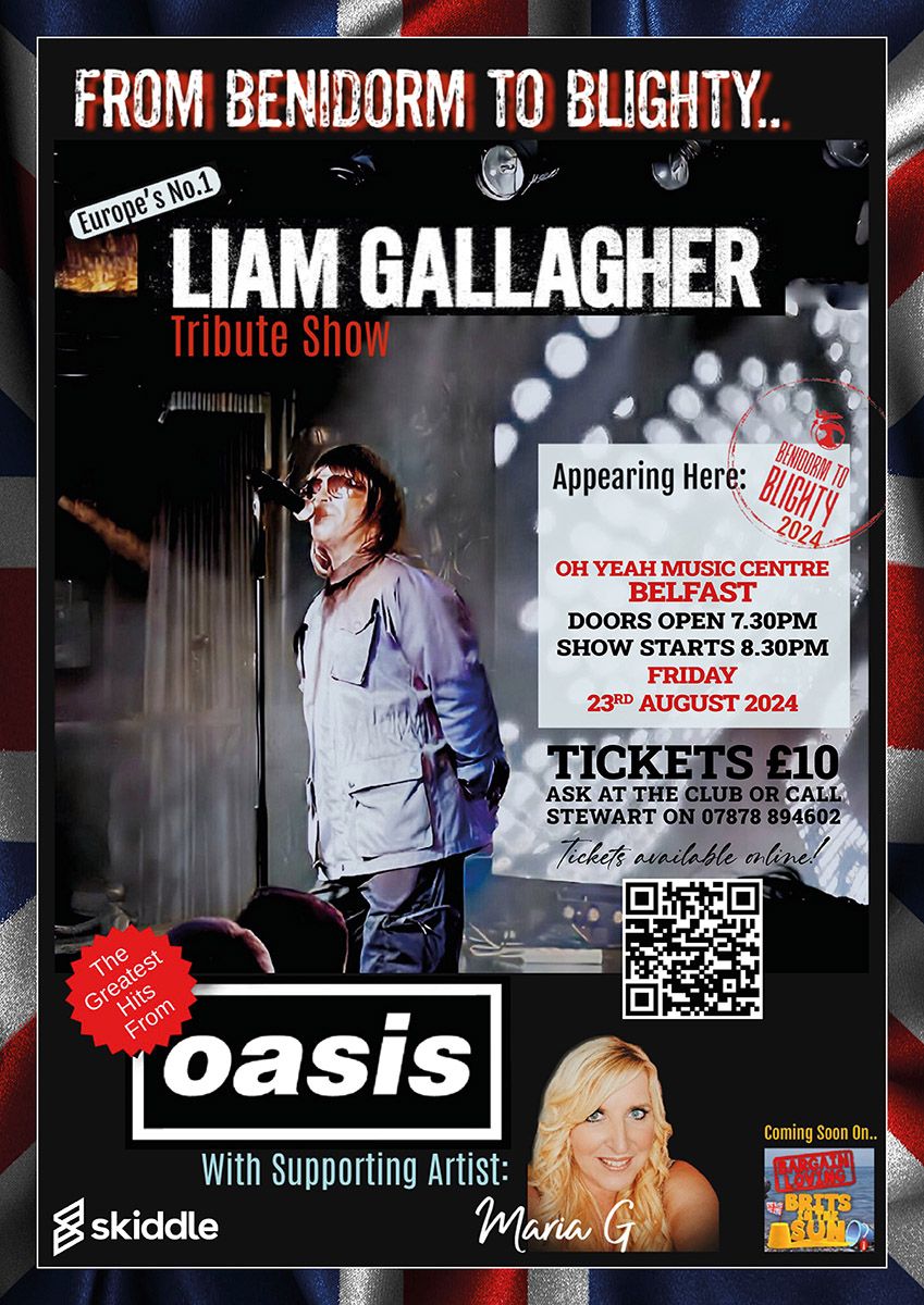 Liam Gallagher Tribute show is smashing it every night in Benidorms premier venues plus you get the fantastic Maria G support show...