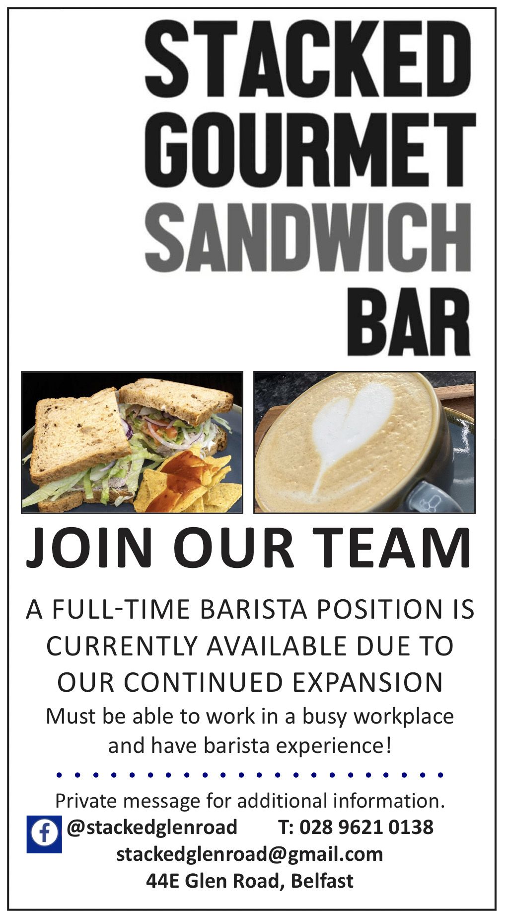 Stacked Gourmet Sandwich Bar opened on the Glen Road in April this year to great fanfare as locals and visitors alike rushed to try their delicious selection of freshly made sandwiches, wraps and salads.