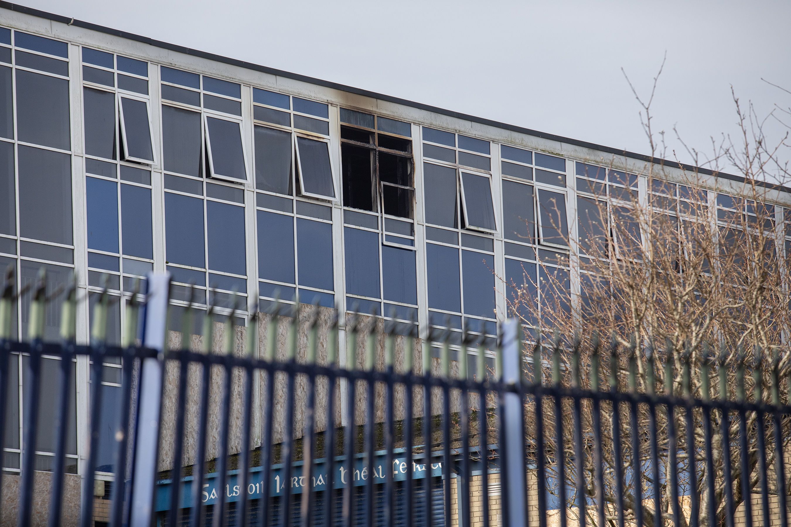 POLICE remain at the scene of an overnight fire at the former Corpus Christi School in Beechmount.