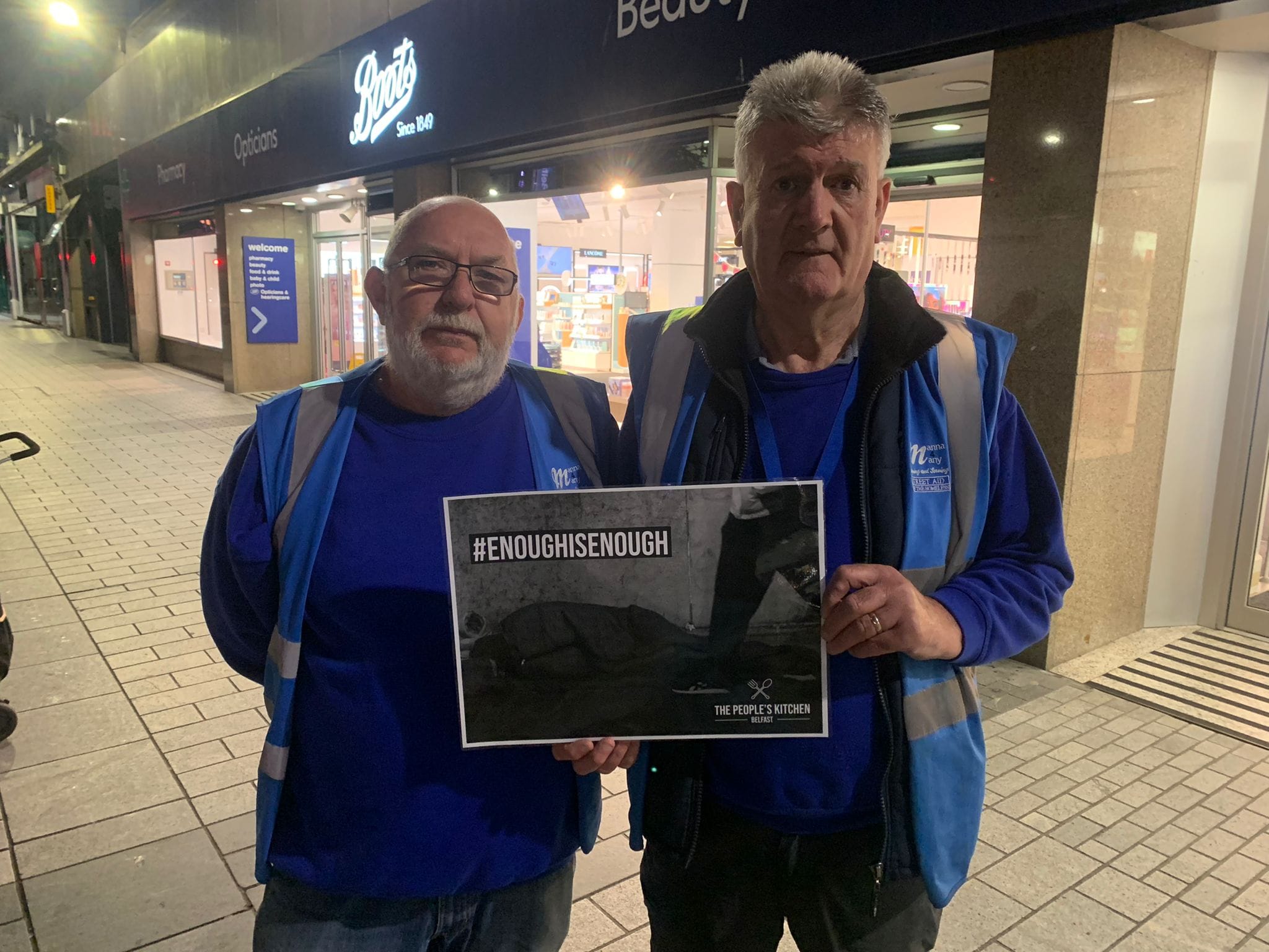 The organisation behind this initiative, The People’s Kitchen, asked the public to take a photo with the poster which stated #enoughisenough and showed a homeless person in a sleeping bag. A series of hashtags were also included which focused on mental health, early intervention, dual diagnosis and overdose prevention facilities.