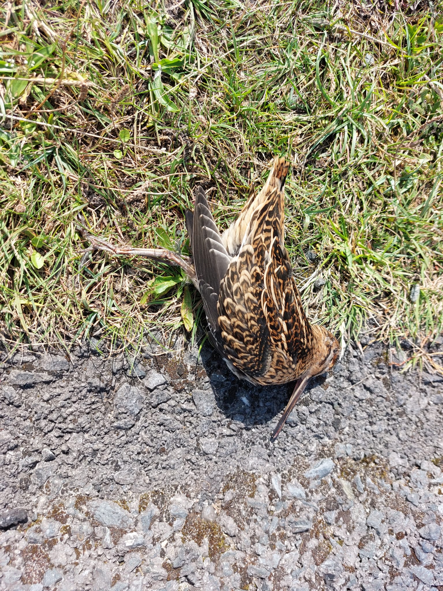 The Andytown News’s Anthony Neeson came across this dead bird this week in Gaoth Dobhair in Donegal. The naoscach – or snipe – must have been hit by a car.