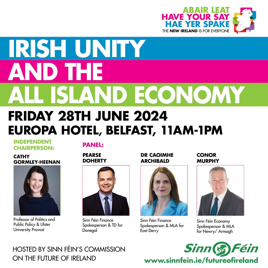 The panel for the discussion will consist of Sinn Féin’s senior finance spokespersons Pearse Doherty TD, Caoimhe Archibald MLA and Conor Murphy MLA.