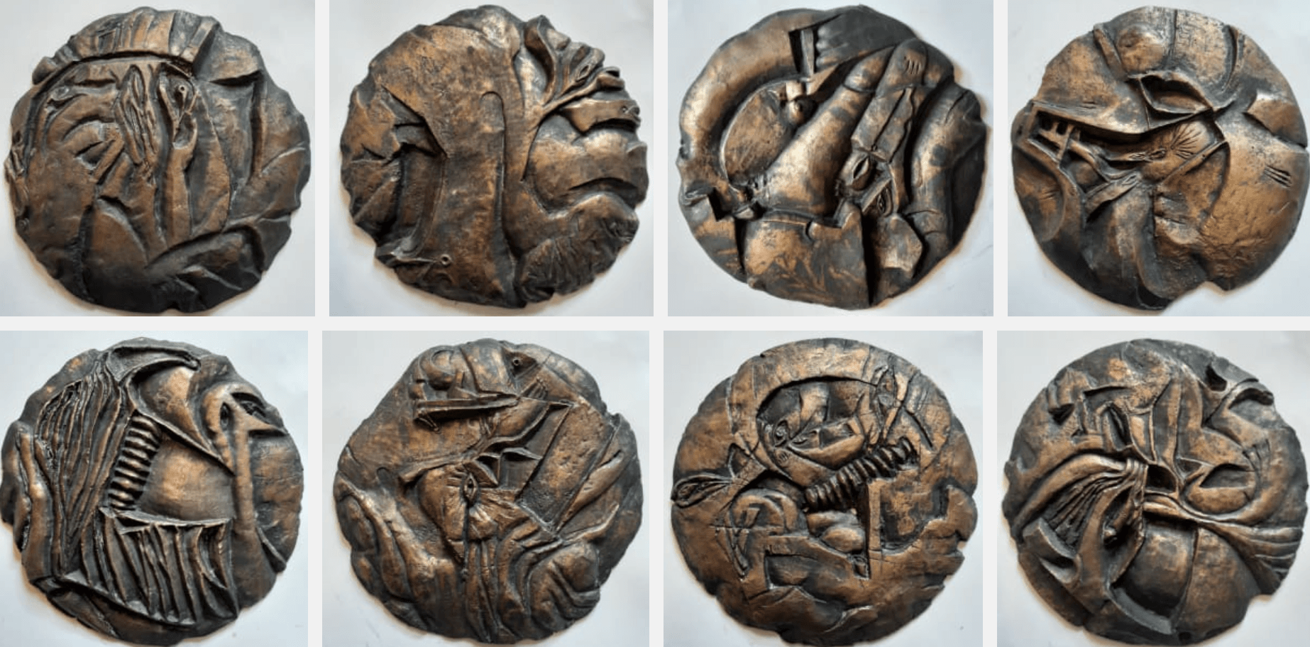 Farhad’s exhibition includes 76 bronze bas-reliefs and is titled A Life in Low Relief. Bas-relief sculptures involve scultping a 2D surface to make it appear as if the scultpure is 3D. Examples of bas-relief can be seen in the work of Renaissance sculptor Donatello.