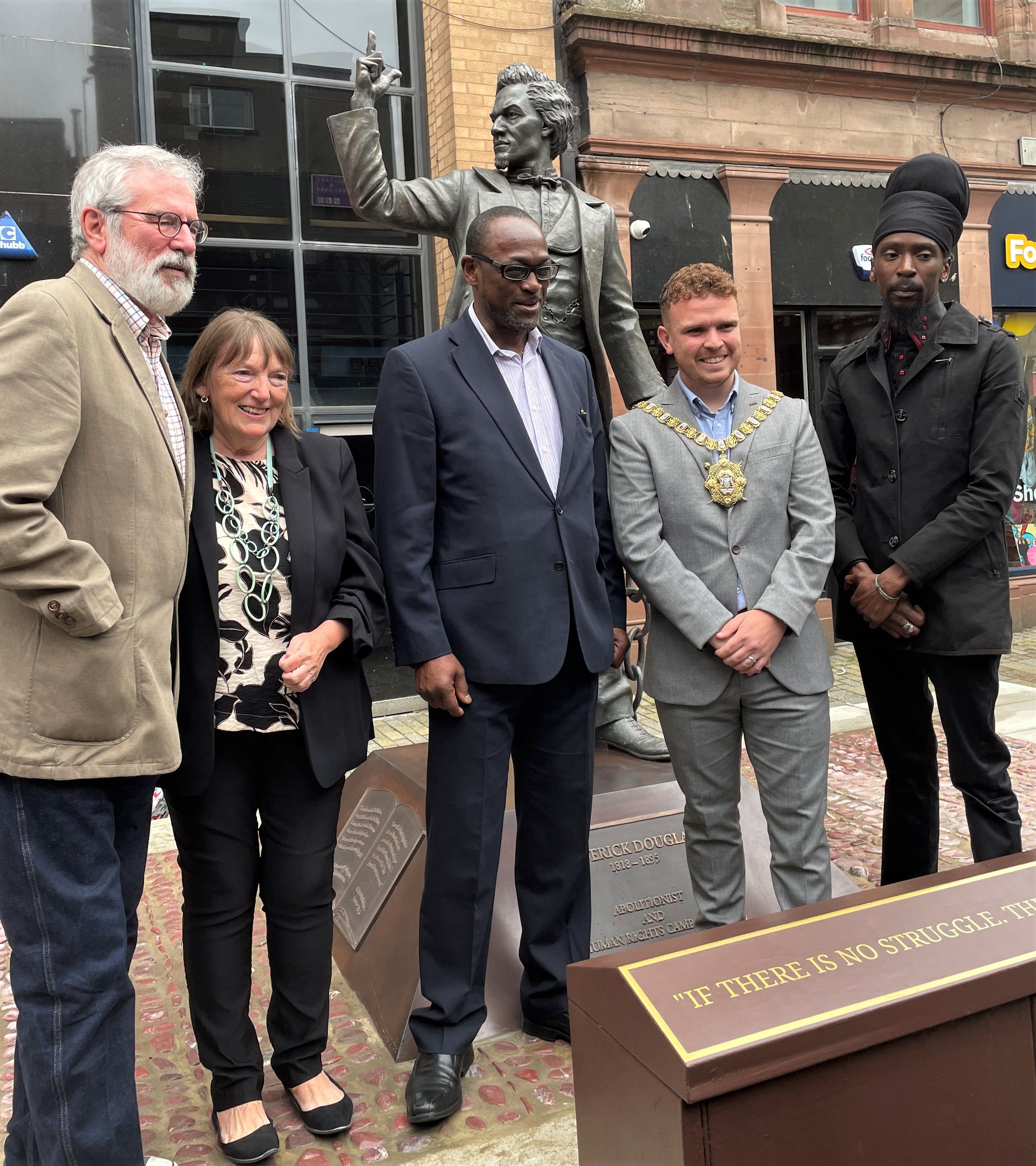 A GREAT crowd turned out on Monday morning in Lombard Street in Belfast city centre for the unveiling by Belfast Ard Mhéara Ryan Murphy of a very fine statue of Frederick Douglass, escaped slave and human rights campaigner. It is a striking image of Douglass, who is an iconic figure for his work on campaigning for an end to slavery and for equality and justice for African Americans and for women. He visited Ireland in 1845-46, just before the worst years of the Great Hunger.