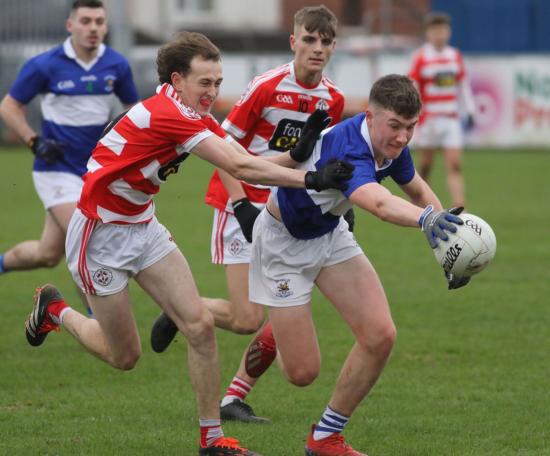 St Paul's got off to a brighter start, with Tarlach Enright kicking a free within the opening minute. Their lead doubled when Conall Duffy made a good break, and the ball was worked to Patrick Crawford, who scored via Caoimhin Duffy.
