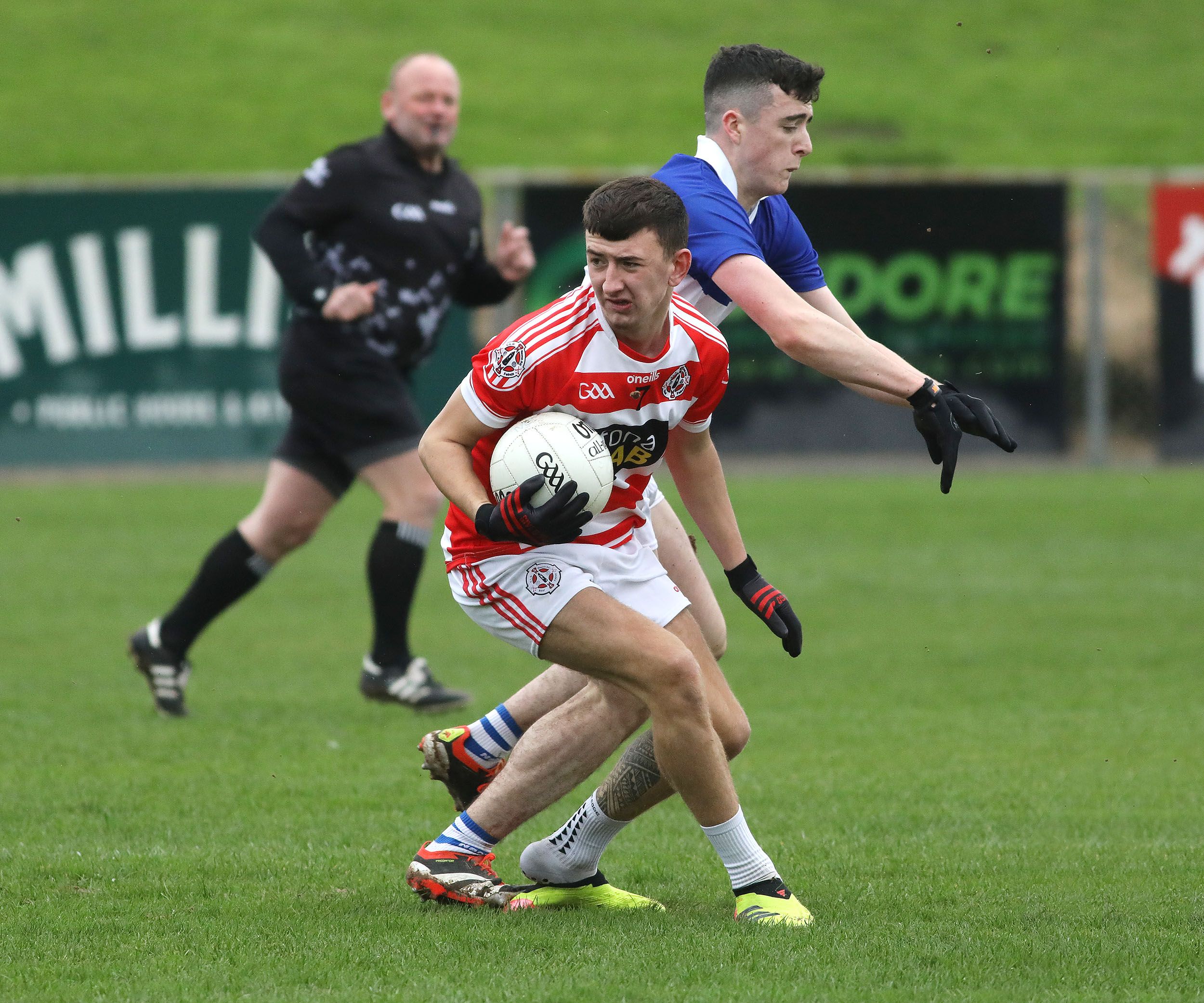 The visitors needed a quick spark to mount a challenge in the second period and it seemed Caoimhin Duffy's flying grab to earn a mark he converted might be it, but the hosts hit them for a second goal just four minutes into the second period. An Adams free dropped short but Lorcan Duffy in the St Paul's goal only palmed it out to Fearghal MacManus to turn home.