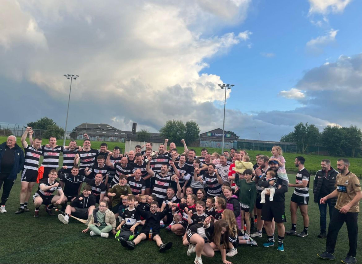 St Agnes’ knew any positive result against the team in second spot would secure the title and wrap Division Three in black and white ribbons. The previous blow-out from the home side was not to be repeated, with the champions elect fighting for a narrow four-point victory to secure the league title with celebrations in Casement Social Club following the victory.