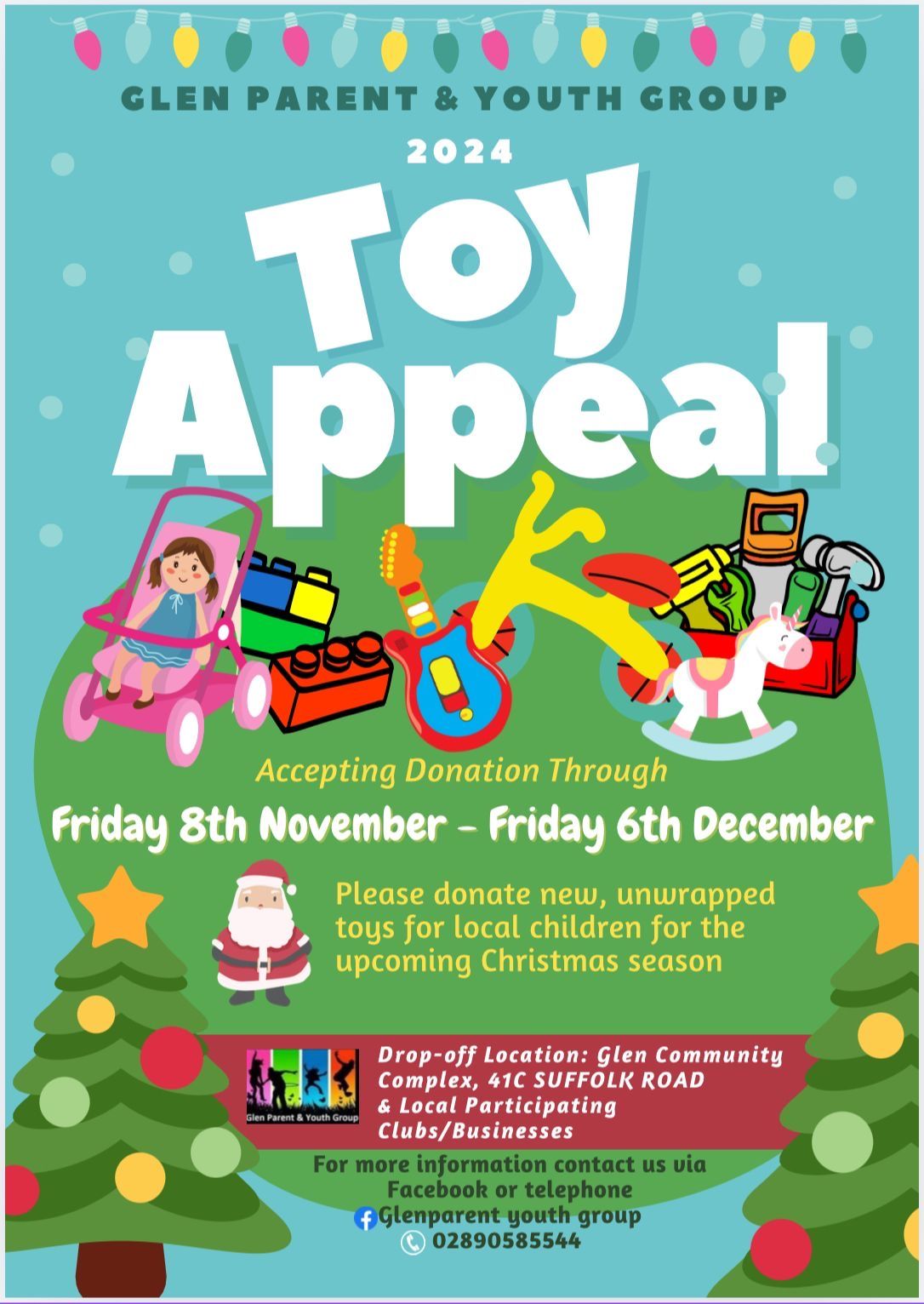 THE Glen Community Parent Youth Group has launched its annual Christmas Toy Appeal, running in partnership with the Lenadoon Women’s Group.