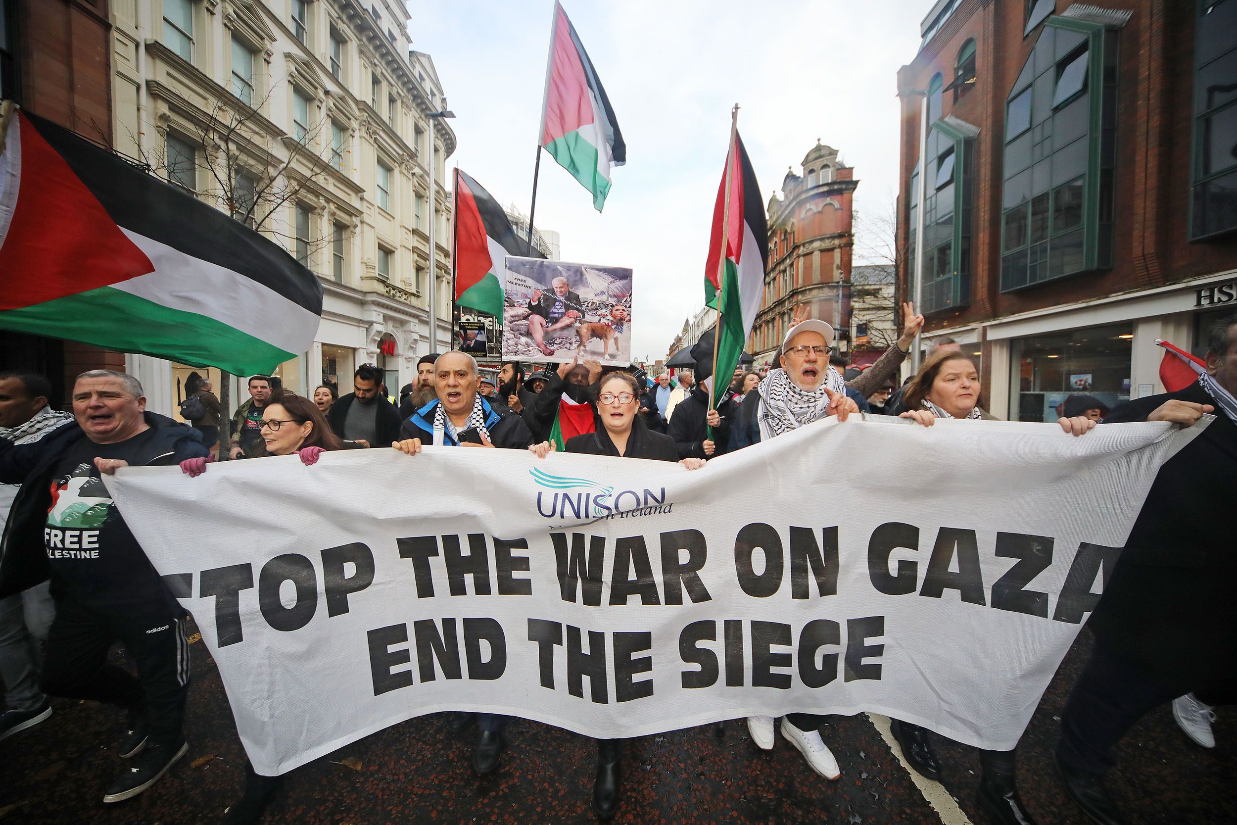 Beidh léirsiú eile á reáchtáil ag Feachtas Dlúthpháirtíochta na hÉireann ar son na Palaistíne (IPSC) i mBéal Feirste Dé Sathairn, an 4 Samhain. Tá an IPSC ag éileamh go gcuirfidh na Stáit Aontaithe deireadh lena gcomhpháirteachas sa chinedhíothú i nGáza. Tá tuairim is 8,000 duine maraithe in Gaza le ceithre seachtaine anuas mar thoradh ar ionsaithe Iosrael, agus bhásaigh 1,400 eile in Iosrael nuair a d’ionsaigh Hamas saoránaigh ann ar an 7 Deireadh Fómhair. Dar le Save the Children, is páistí a bhí in 3,360 díobh siúd a maraíodh sa Phalaistín in imeacht trí seachtaine go leith. Bhí na Stáit Aontaithe ar cheann de líon beag tíortha, 14 san iomlán, a vótáil in éadan rún a chuir an Iordáin chun cinn ag Ard-Tionól na Náisiún Aontaithe go mbeidh sos cogaidh ar bhonn daonnúil ann agus go scaoilfear saor gan choinníoll gialla Iosraelacha agus Palaistíneacha.