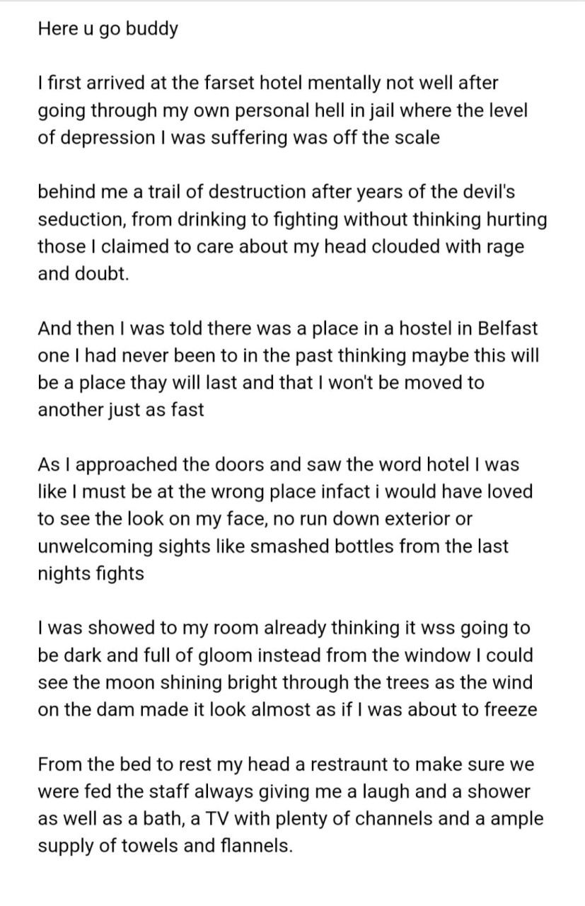 FARSET Hotel on the Springfield Road has been fast gaining a reputation as “the best homeless hostel in Belfast".