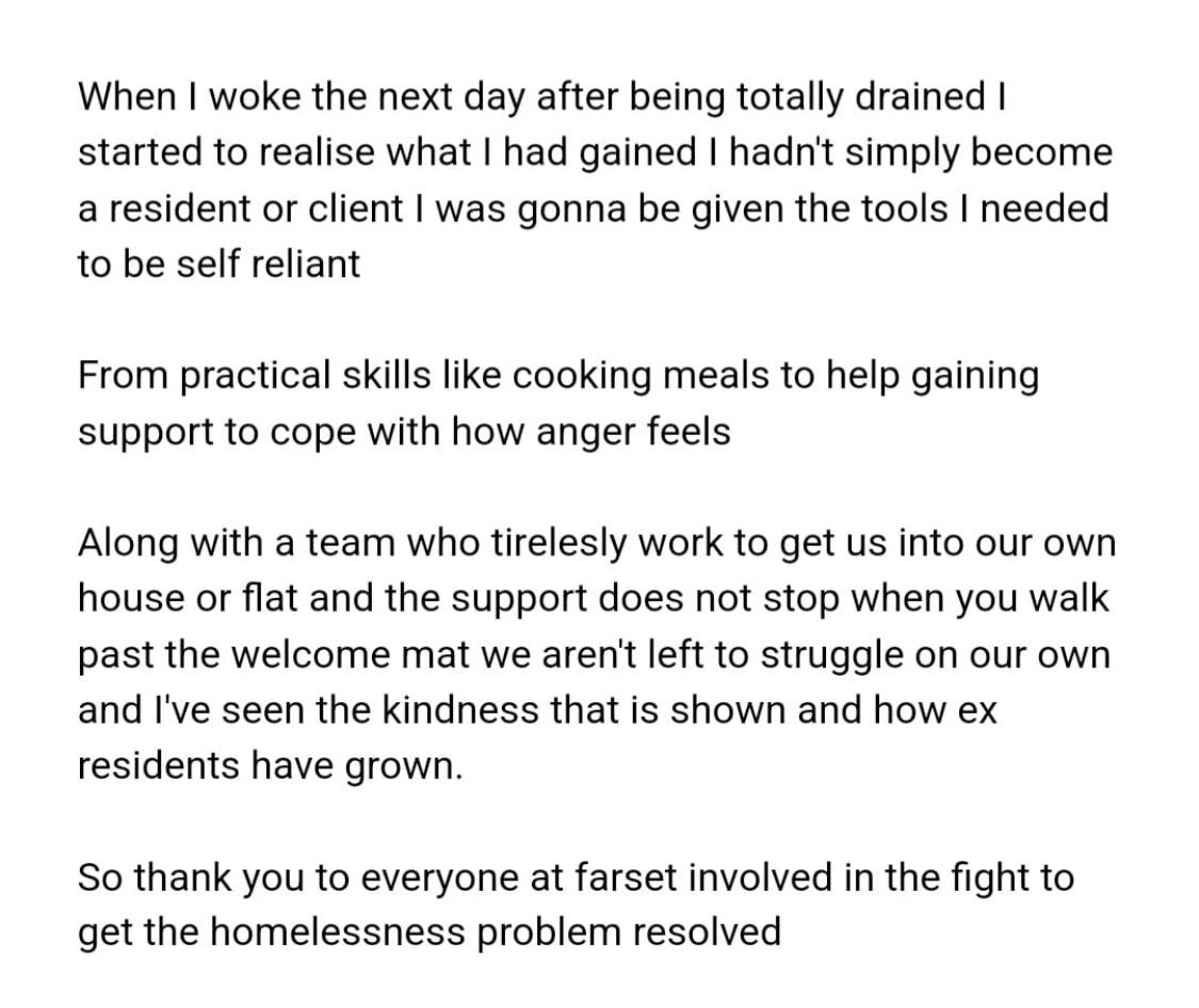 Kyle who is disabled and has been on the waiting list for a home for the past 18 months said: “I never understood homelessness until I moved in here. Since I came here and I have met the guts of a hundred or two hundred people and they’re all homeless. Now I fully understand everything about it.