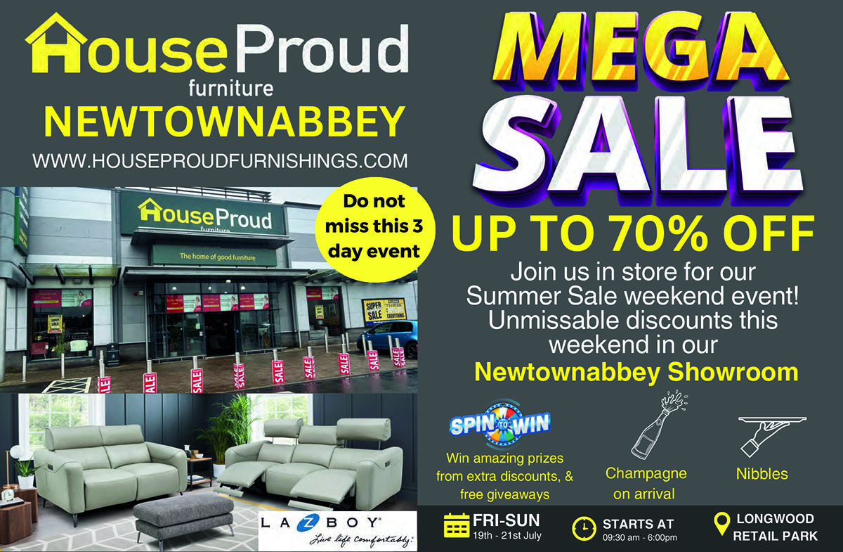 GET ready for the biggest shopping event of the season! Our House Proud Newtownabbey Summer Sale is happening this weekend, from Friday 19th to Sunday 21st, and you won't want to miss out. Kick off your shopping spree with a touch of luxury—enjoy a complimentary glass of champagne upon arrival.
