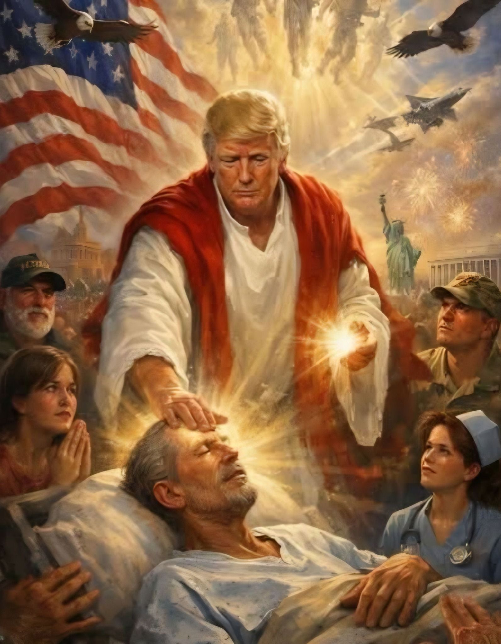 In a spree of late-night Truth Social posts, Trump also shared an AI image of himself as Jesus Christ without comment.