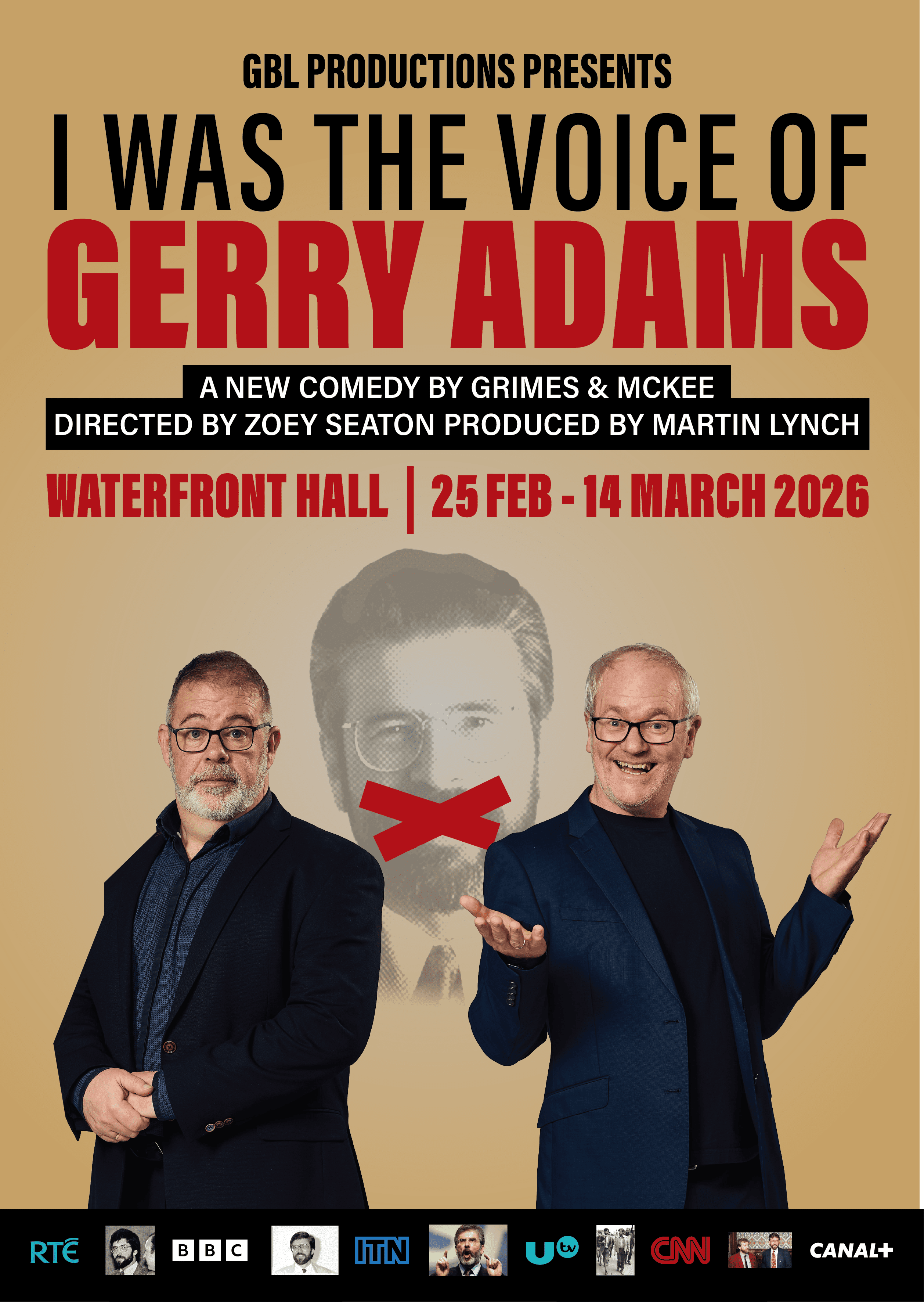 New for 2026, Grimes and McKee’s comedy, I was the voice of Gerry Adams tells the hilarious story of how the lives of Belfast actors were turned upside down when they were hired daily to voice Adams’ words. The actors couldn’t believe their luck as the money rolled in.