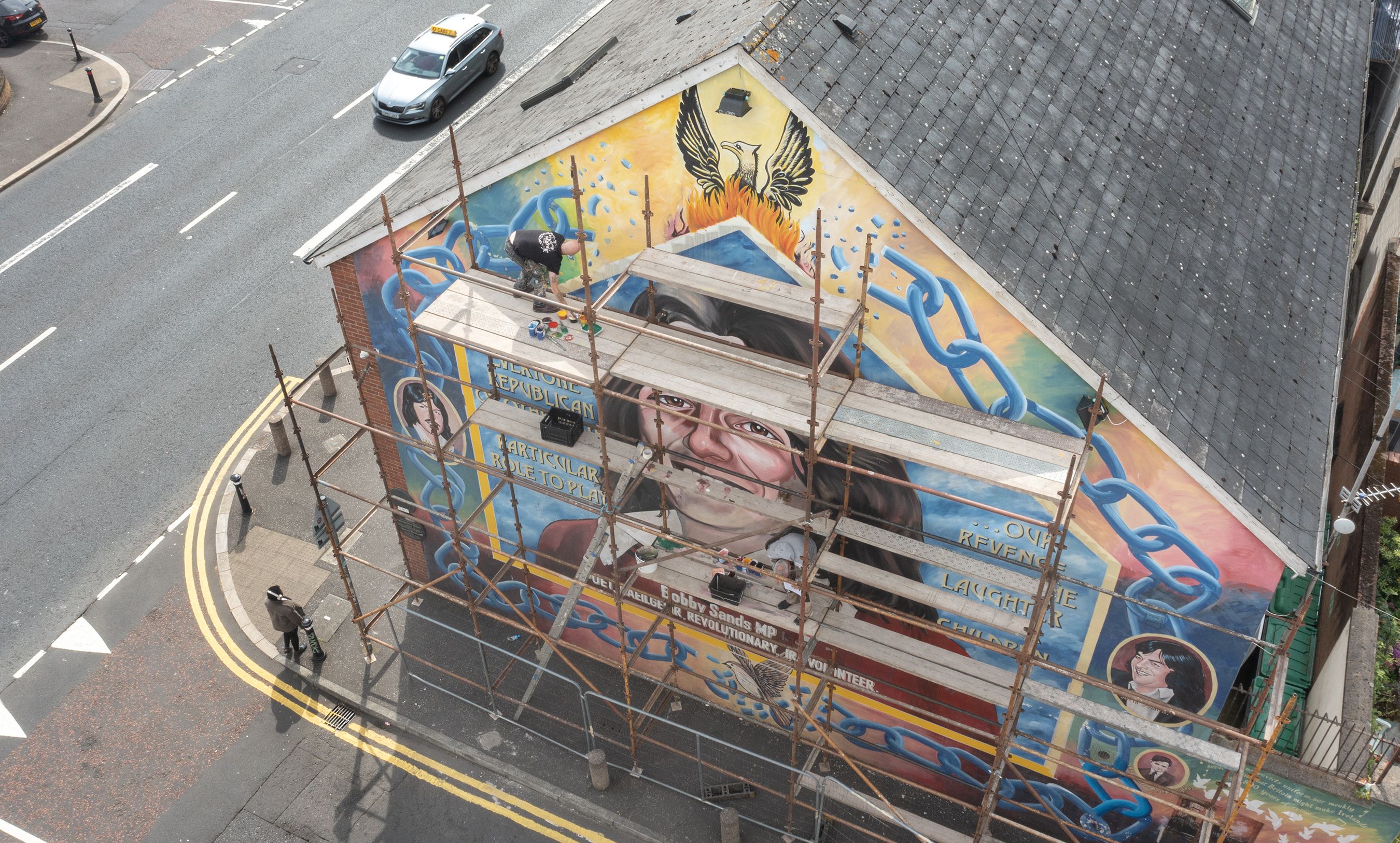 The mural, located on the Falls Road at Sevastopol Street, is a major cultural and historical attraction, drawing thousands of tourists each year. The restoration is being carried out by renowned Belfast muralists Micky Doc and Marty Lyons.