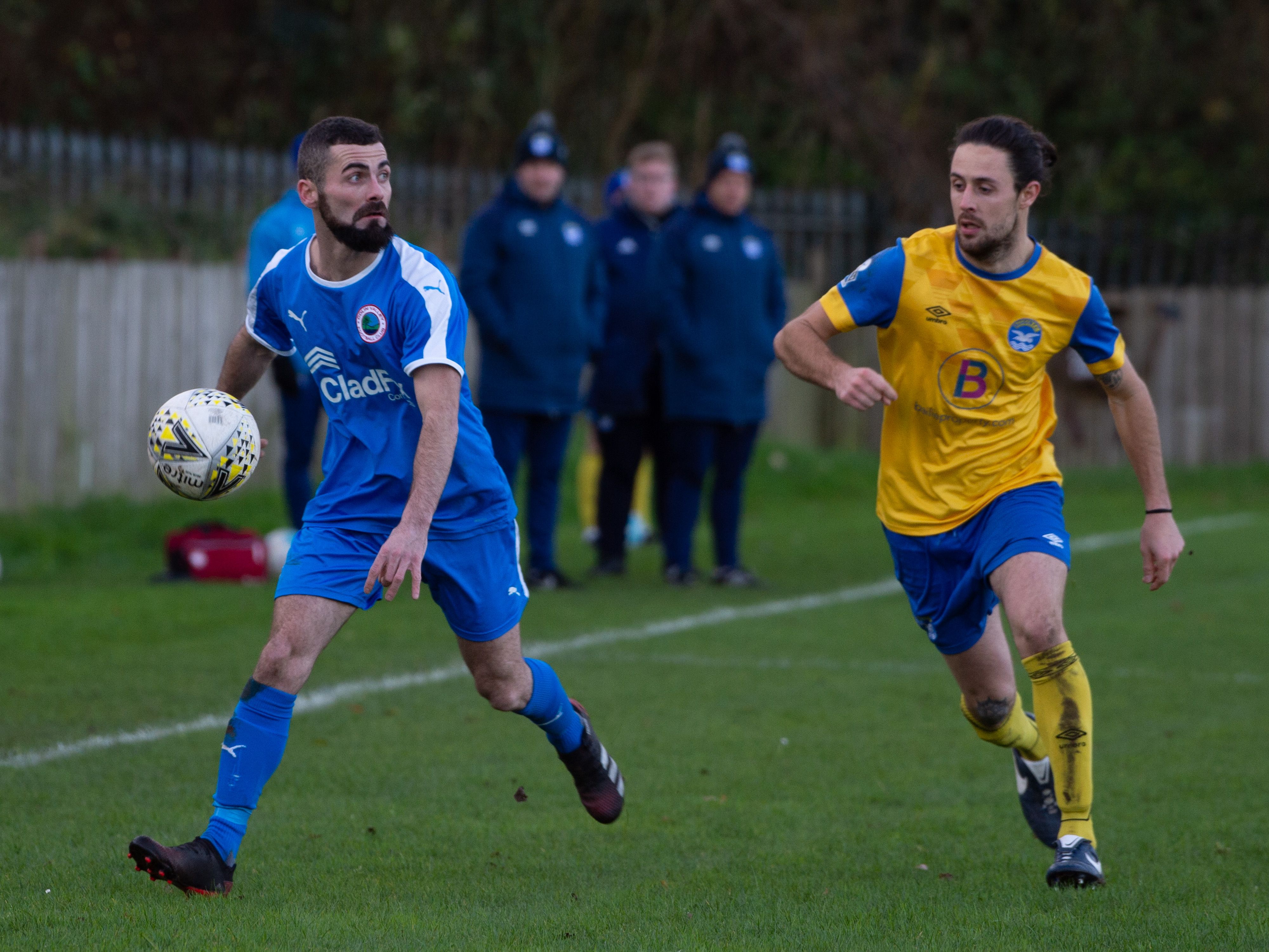At the other end, Mark Cooling tried his luck from range with the shot dropping just over the bar, but goal number two was not long in arriving as from a turnover, Cooling played a brilliant ball upfield to Ben Arthurs who thumped high into the net.