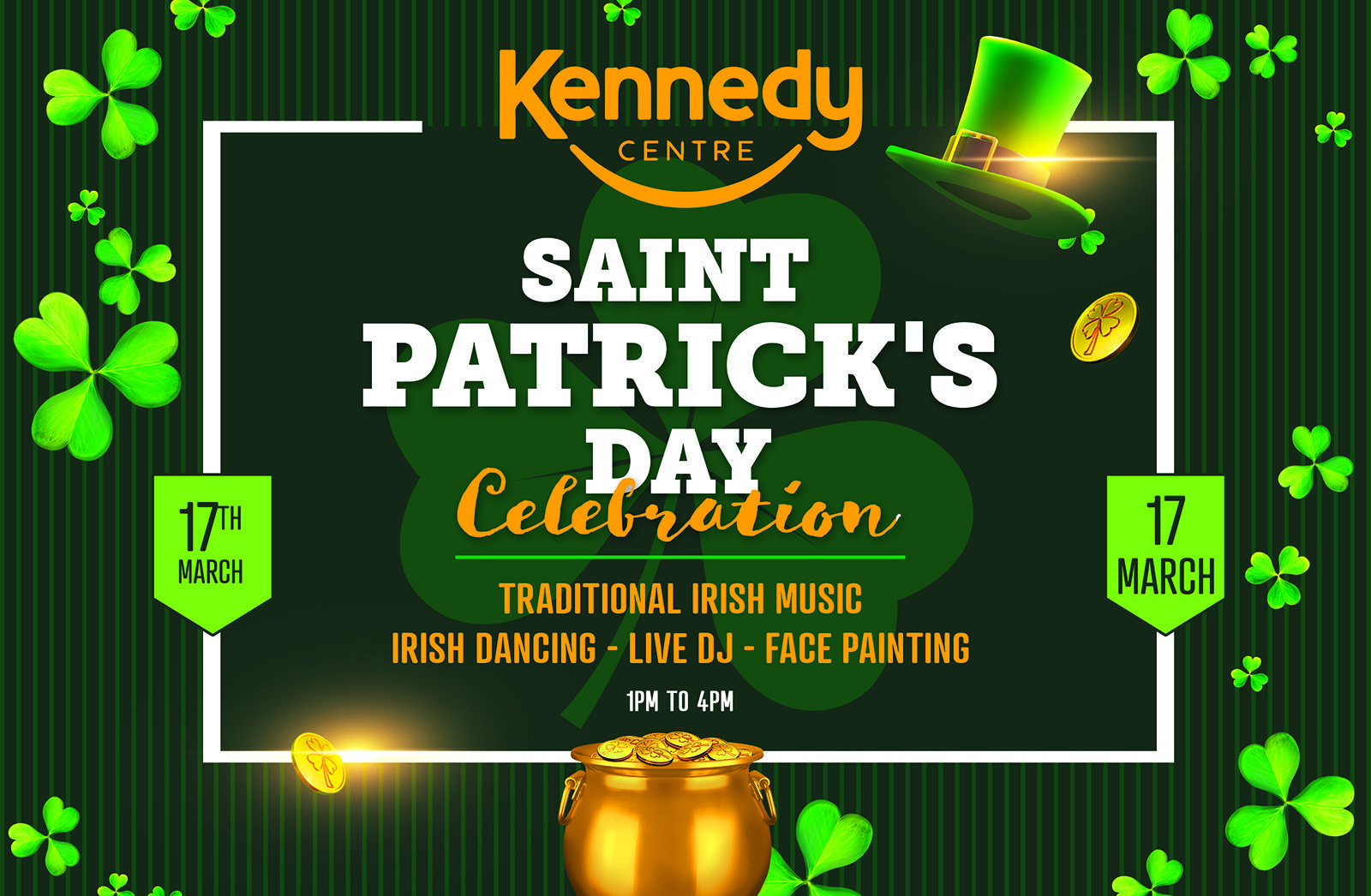 Kennedy Centre is inviting families and shoppers to join them for a lively St Patrick’s Day celebration on 17 March, with an afternoon of entertainment, music and prizes to be won.