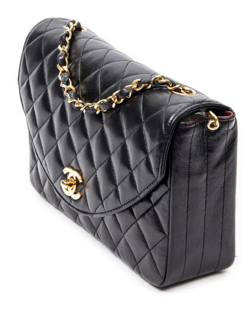 The vintage 1981 Chanel handbag features a 24-carat gold-plated chain and clasp.