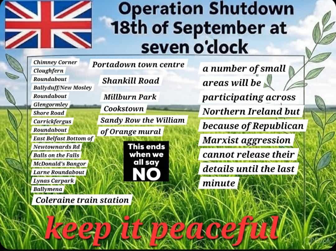 ‘Operation Shutdown' will commence from 7pm on Thursday night, with locations including Chimney Corner, Shankill Road, Sandy Row, Glengormley, Shore Road and Lower Newtownards Road in East Belfast.