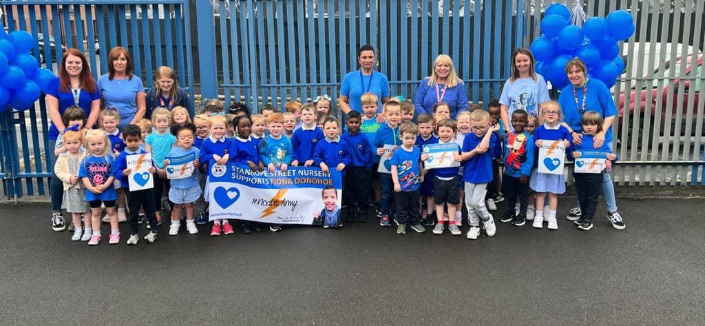 The children received a blue balloon and a blue heart, all with the blessing of Noah's mum, Fiona.
