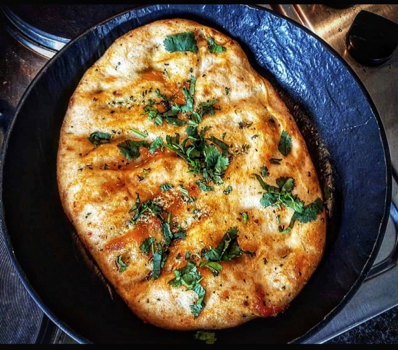 Place a medium sized pan on to a medium heat. Roll out the dough to the required size add to the pan and cook for a few minutes on one side. Flip over and smear the butter on the bread. Cook for a few minutes and remove from the heat.
