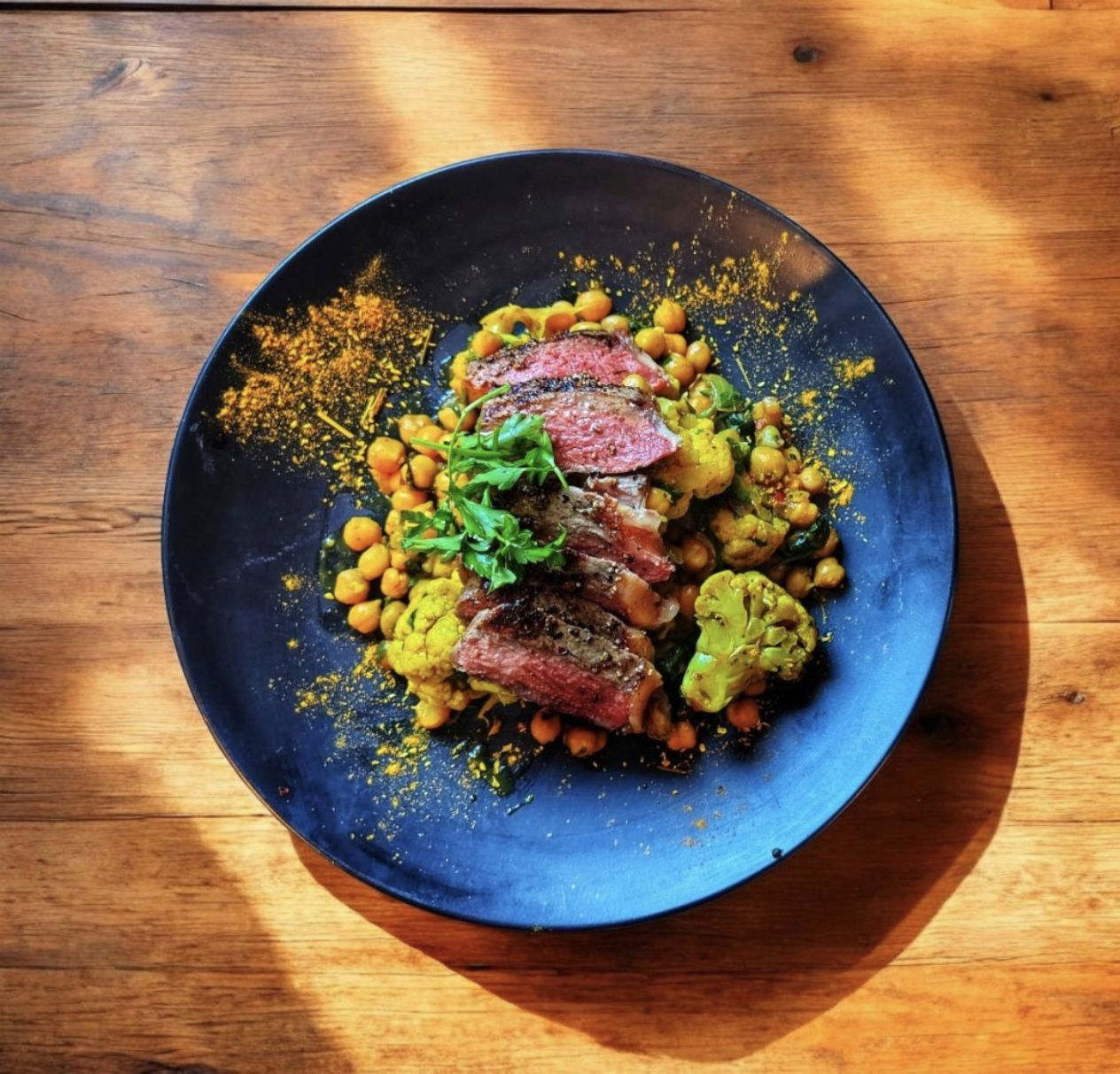 Season with salt and pepper and gently warm. By this stage, the Cauliflower will be cooked, and the steak will be ready to slice.