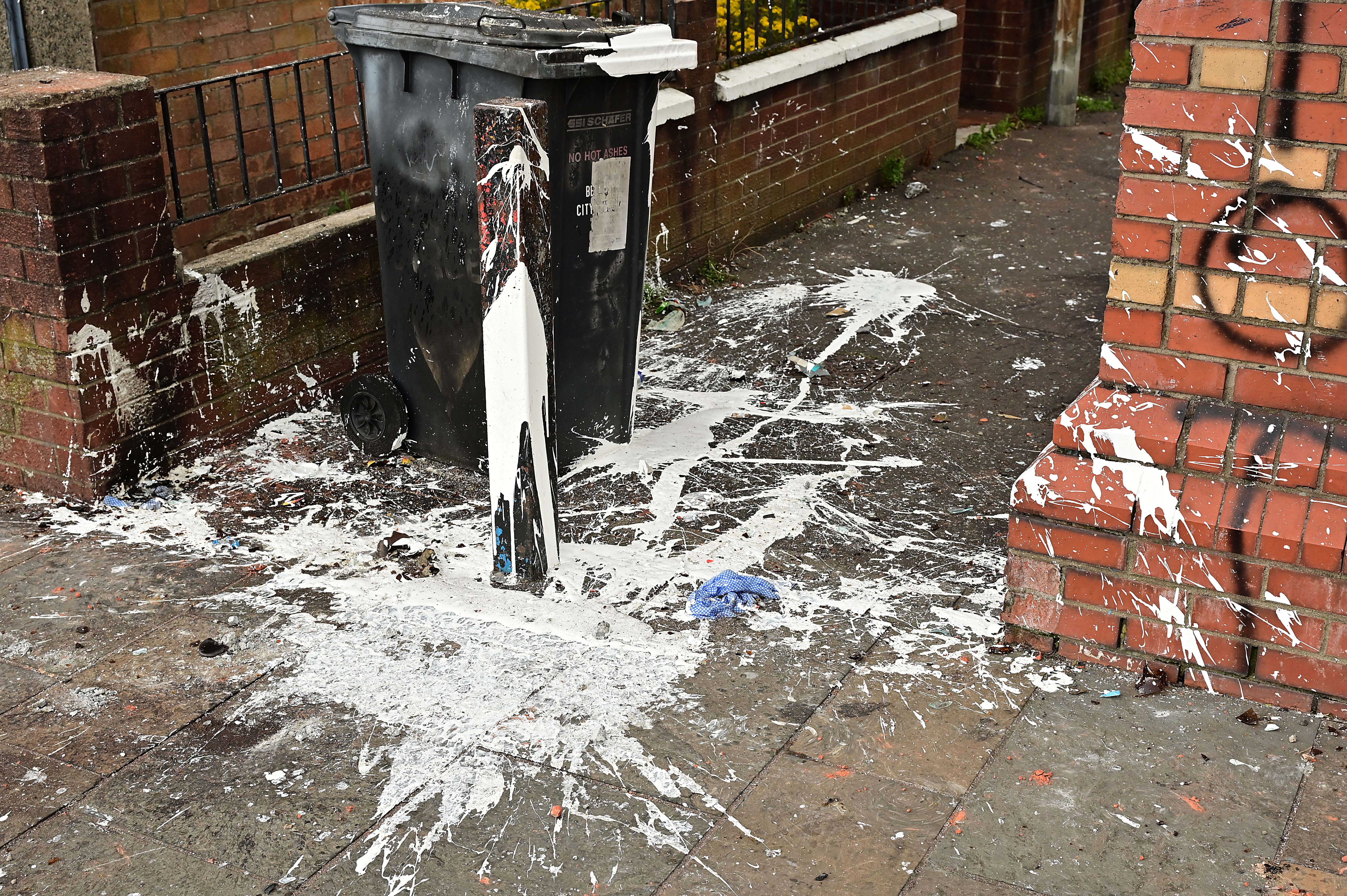 PSNI responded to reports of running battles between up to 50 youths from the Village and St James’ area. The windscreens of three cars were shattered and splattered with paint with some damage also caused to police vehicles.
