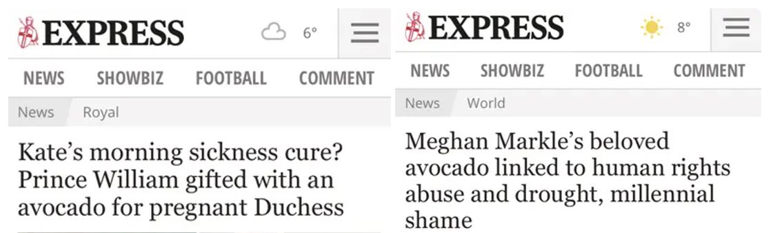 2. ‘Meghan Markle’s beloved avocado linked to human rights abuse, drought and millennial shame.’