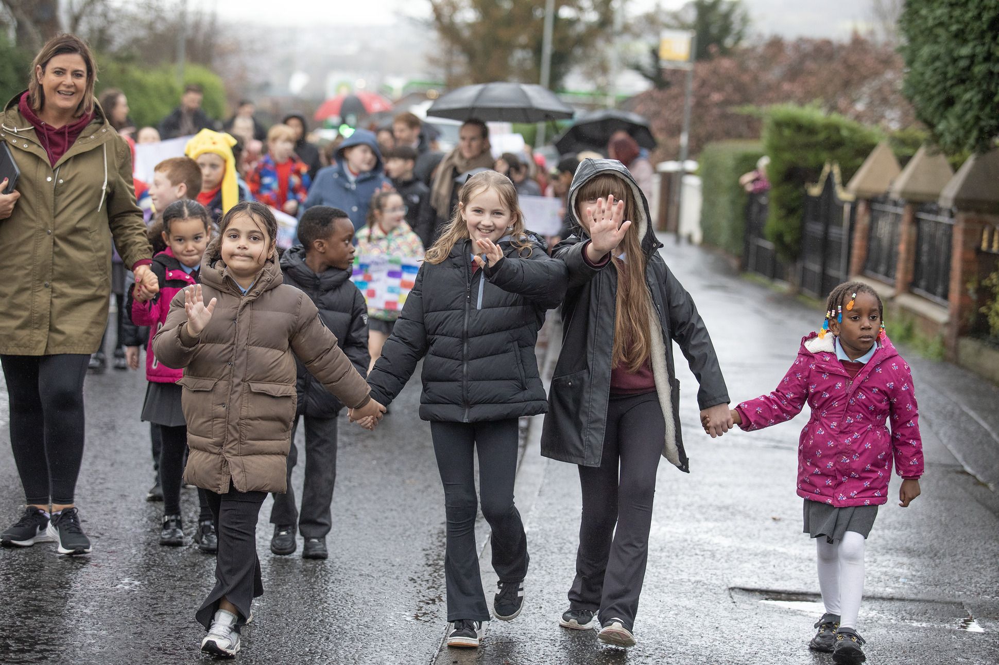 West Belfast MP Paul Maskey MP took part in the walk with Lord Mayor Tracey Kelly, along with other schools.