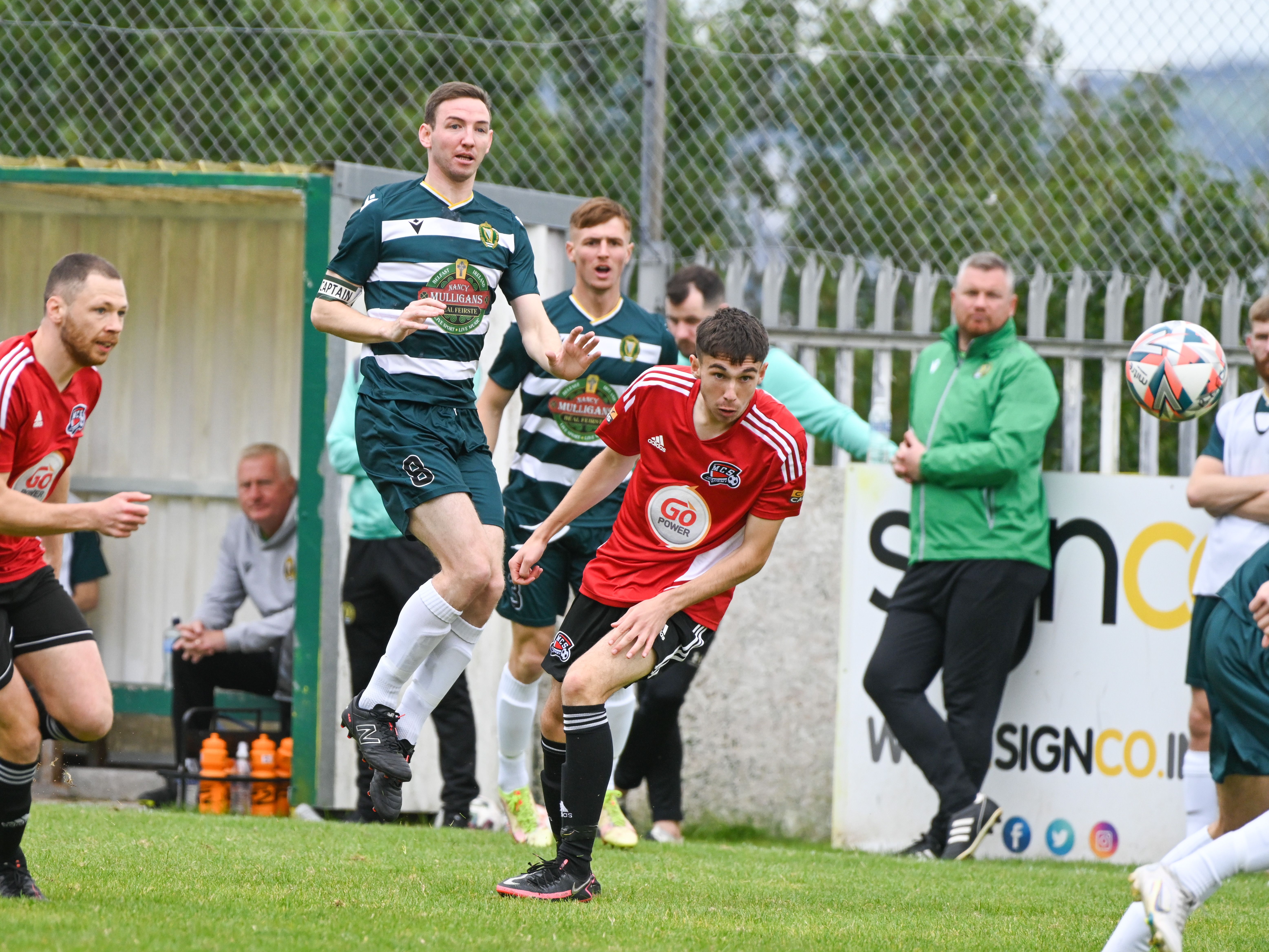 Belfast Celtic could now sense they had Maiden City on the back foot, and turned up the pressure. A couple of yellow cards in quick succession for Celtic midfielders as well as a firm word in the ear for midfielder Kelly after a late tackle on full back Curry simply reminded Celtic of the need for cool heads, as travelling Maiden City fans began calling for the referee to hand out more bookings.