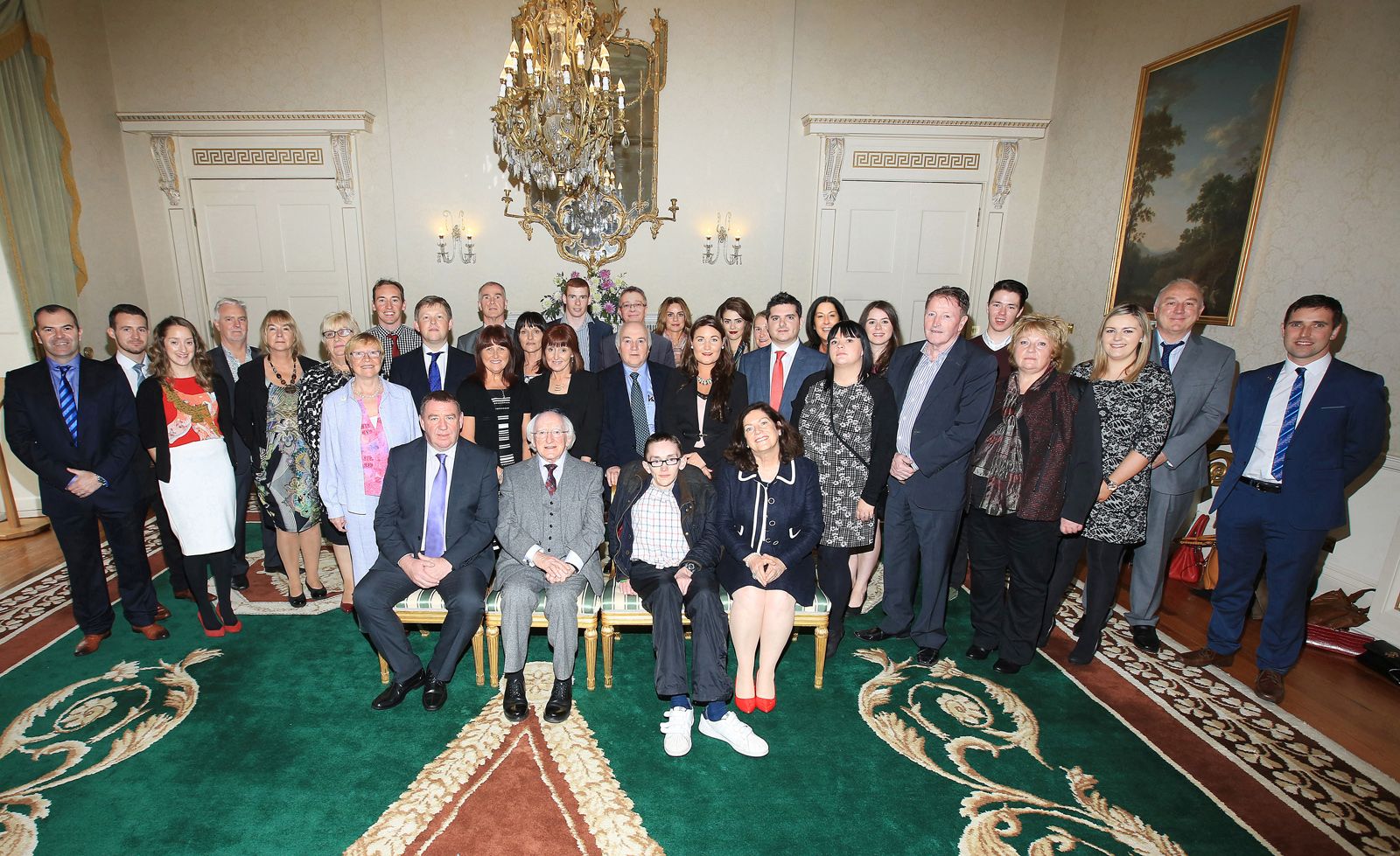 To mark the 15th anniversary of the Aisling Bursaries, President Michael D. Higgins invited West Belfast Partnership Board to bring a group of Aisling Bursary sponsors and recipients to meet with him at Áras an Uachtaráin.