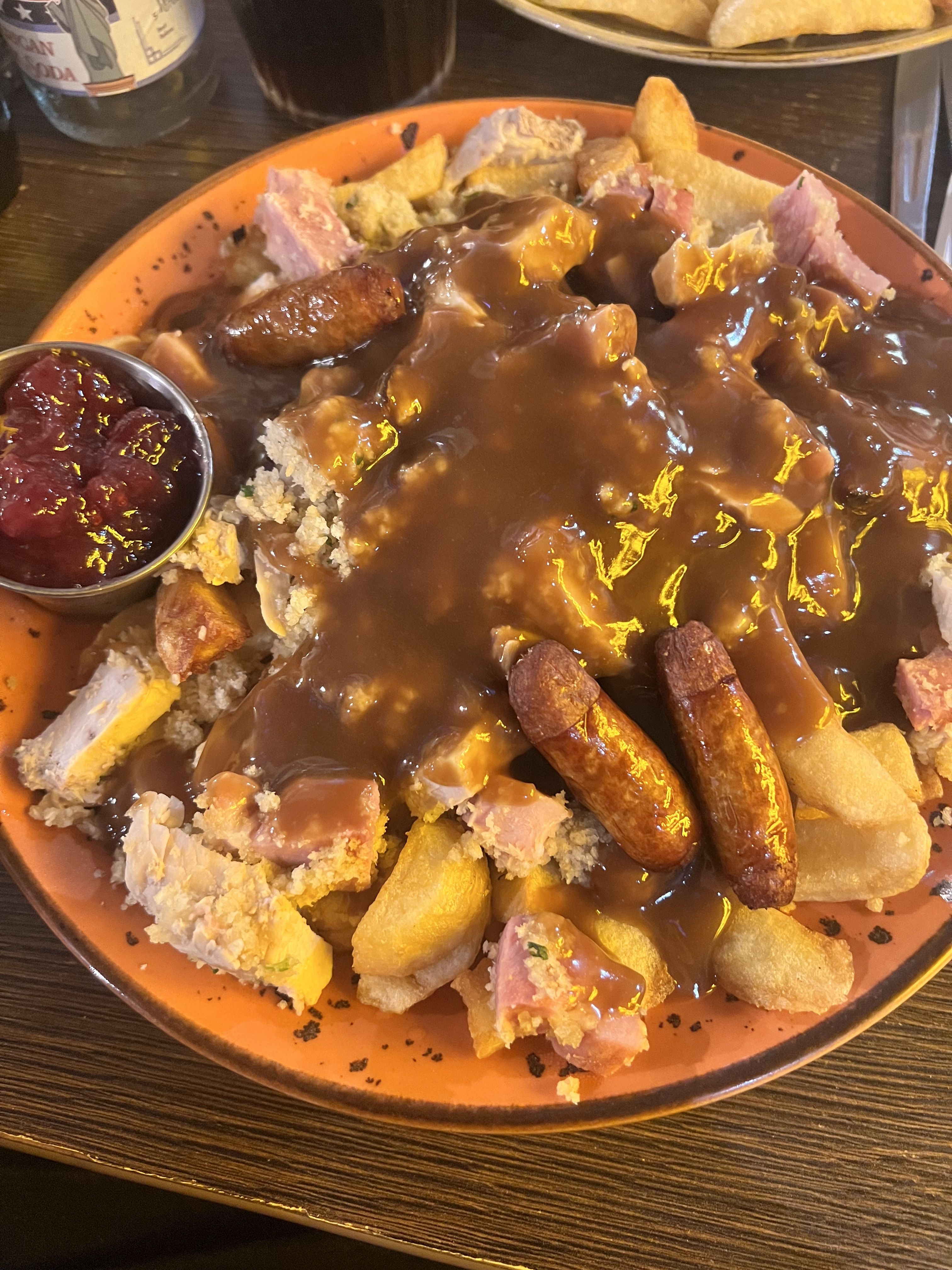 Savoury stuffing, ham and gravy,