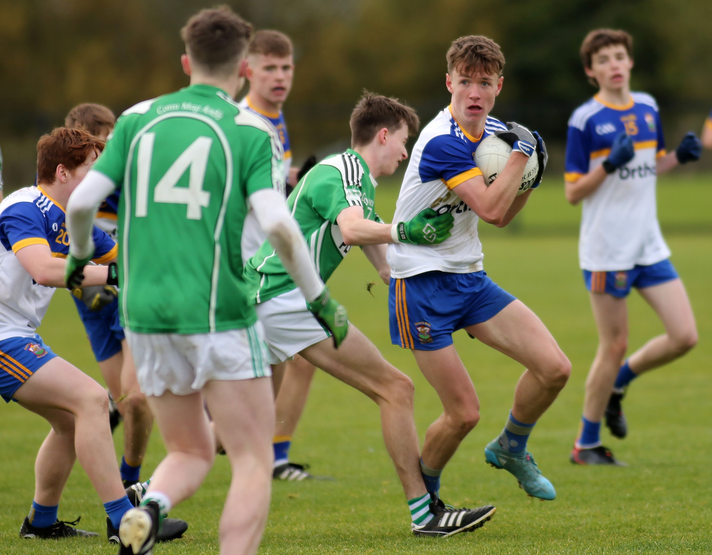 The match got off to a fast start on the cold shore of Lough Neagh, with Glenravel’s Shea Ó Broin putting away three fantastic frees within the first ten minutes, showing his skill at taking long shots for points between the bars. St Brigid’s Rory McErlean got a good free in for the South Belfast men, and another brilliant point was earned by Callagh Mooney for Glenravel.
