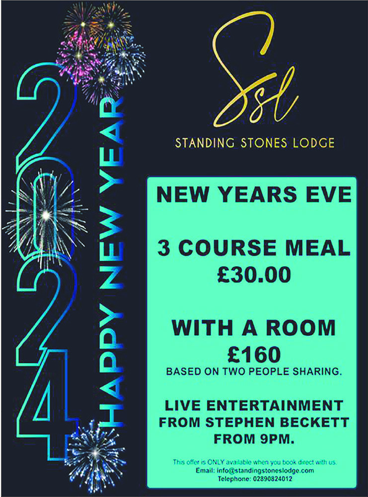 STANDING Stones Lodge, located on the outstandingly picturesque heights of Divis and Black Mountain, have just launched their Christmas menu and events for the holiday period.