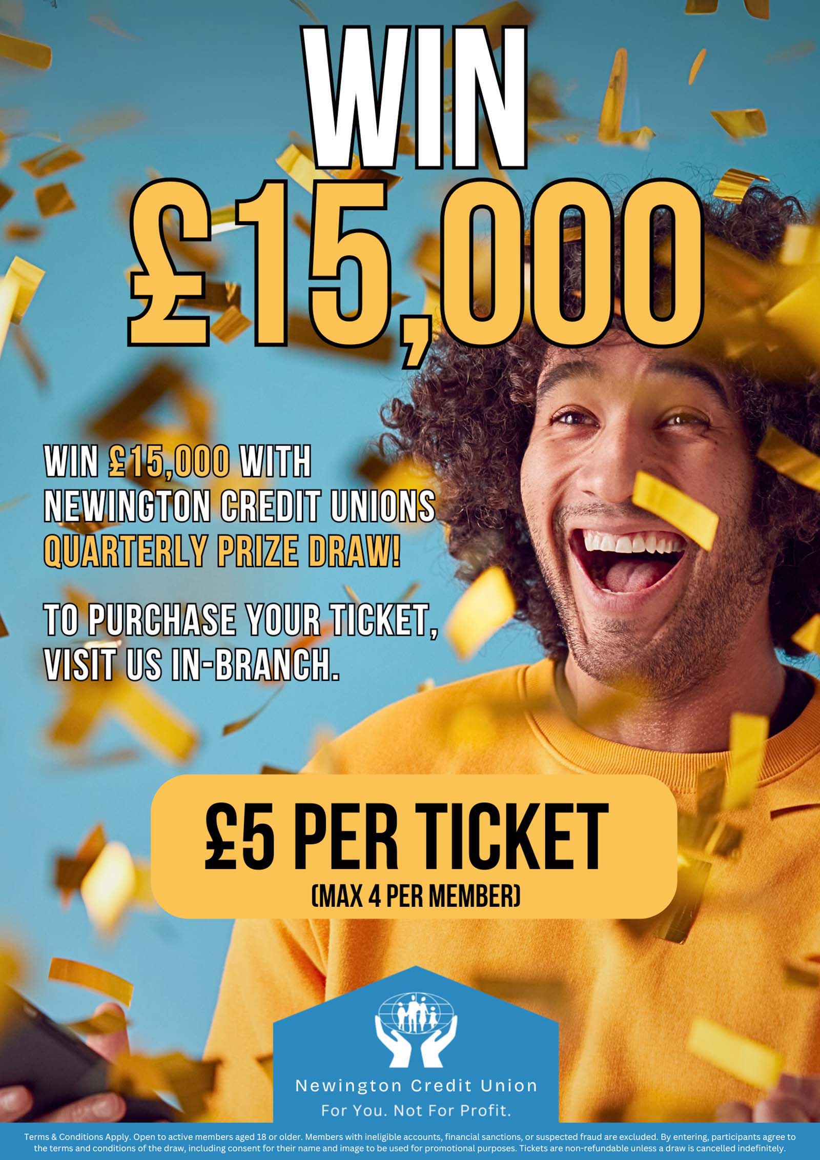 Newington Credit Union is delighted to remind members that there is still time to purchase tickets for its exciting Quarterly Prize Draw, offering the chance to win a £15,000 grand prize.