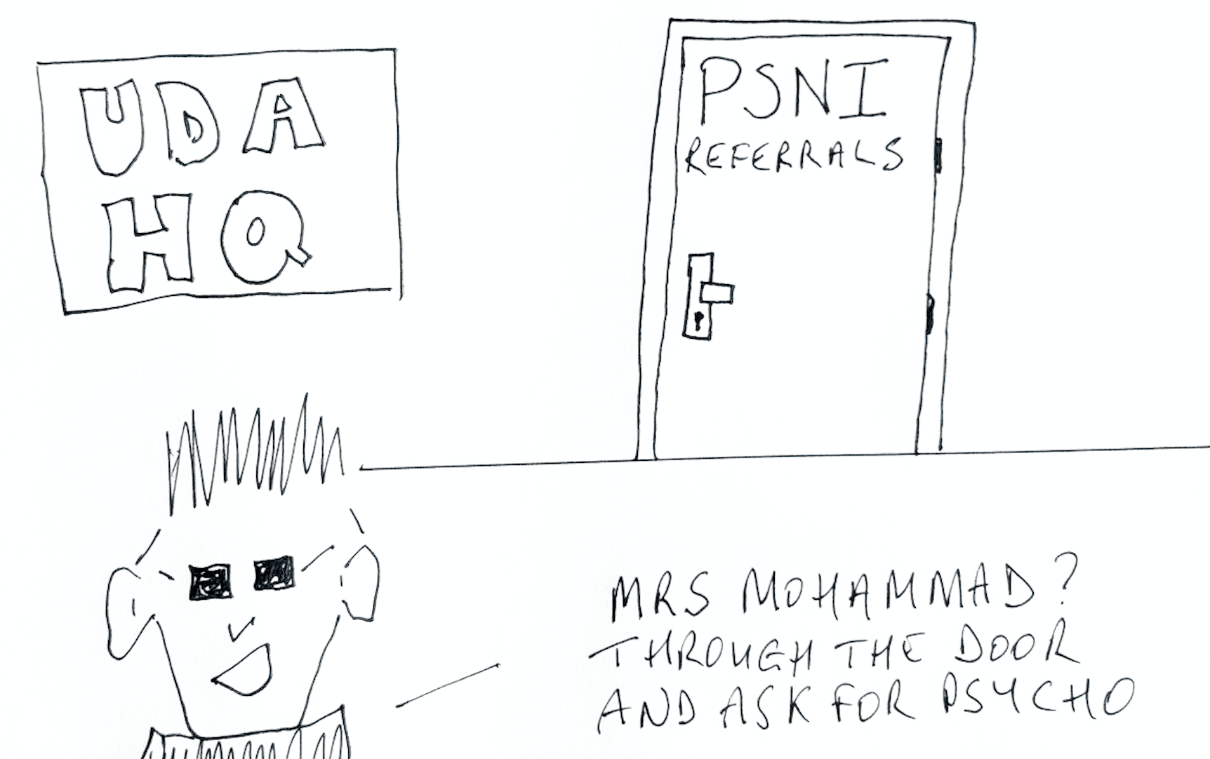 The difference is that in Dublin politicians don’t meet the Kinahans or the Hutches to talk policy. In Dublin they pour huge resources into locking the Kinahans and the Hutches up. Up here, the PSNI refers frightened and vulnerable migrants to the UVF and UDA in the hope that Pliers and Stewarty will step away from the class A long enough to offer them a little friendly advice on how to keep their windows intact.
