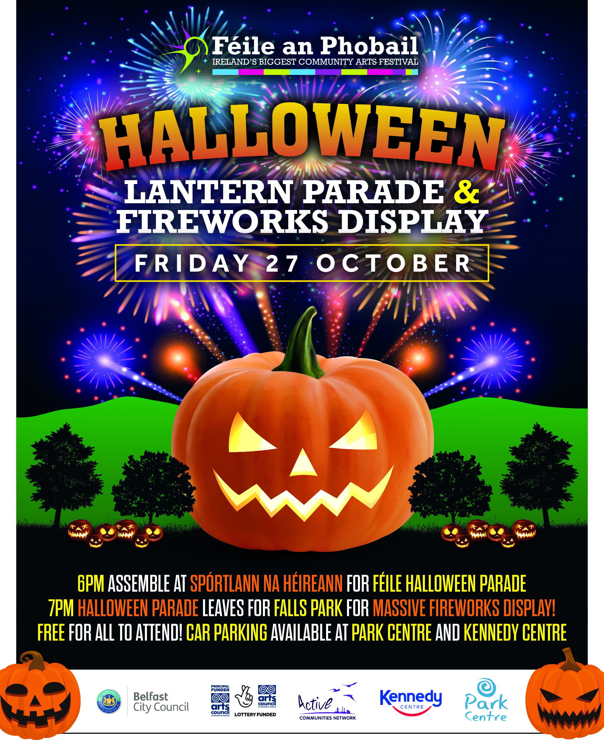 The Lantern Parade will assemble next Friday 27th October at 6pm, departing at 7pm from Spórtlann na hEireann, Falls Road to parade to the Féile Falls Park Event Space. The fireworks display will take place only when everyone from the parade has safely arrived at the viewing area at the Falls Park Event Space.