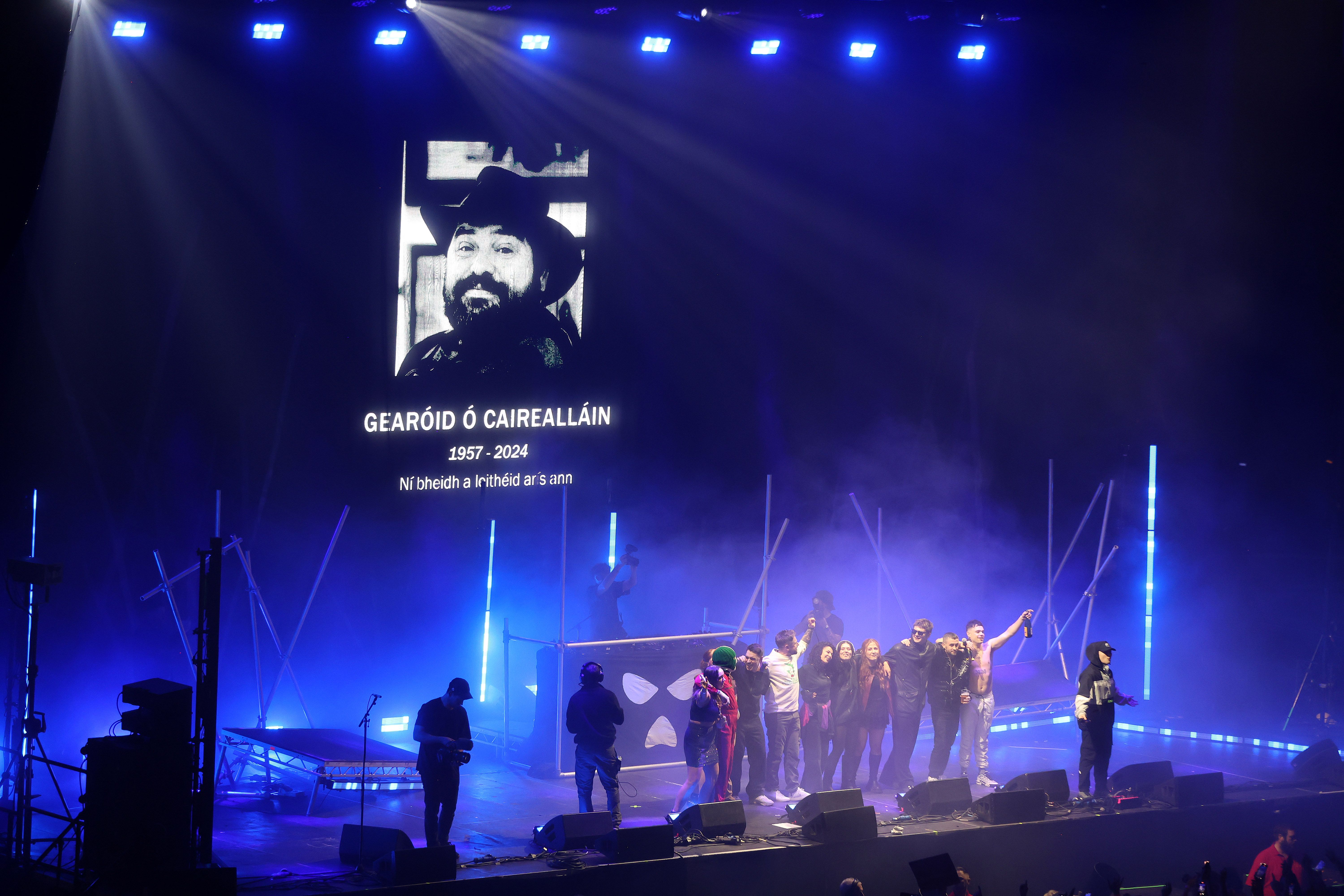The backdrop at the end beamed an image of the late Gearóid Ó Cairealláin – a man to whom the night was dedicated and would have smiled down upon the confetti-draped arena as thousands chanted as Gaeilge. His son, bandmates, guests and more took a bow as 'Fairytale of New York' was sung in unison and then, upon exit, a wee bit of Elvis (an idol of Gearóid) got an airing.