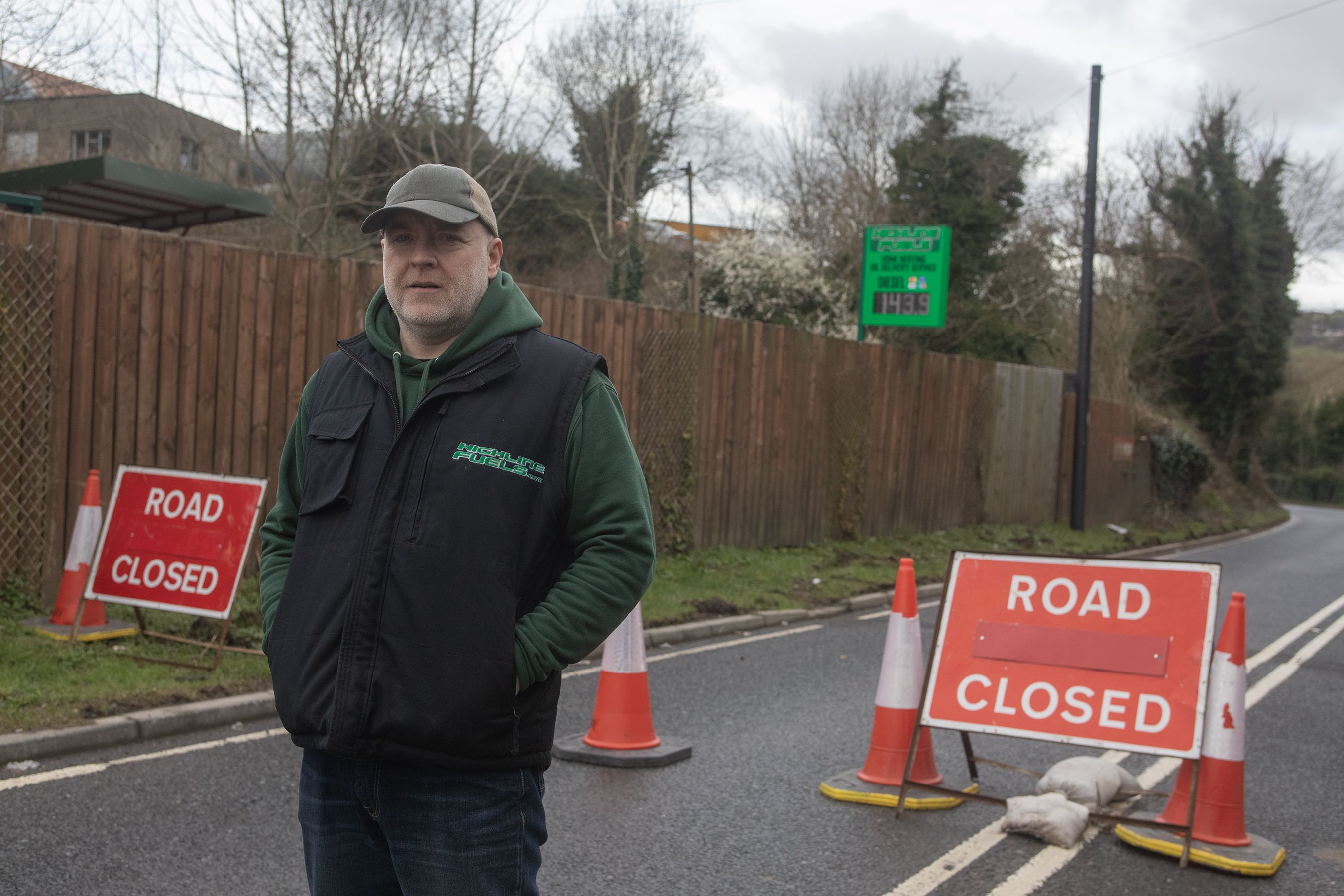 Sean Matthew, who owns Highline Fuels on the Colinglen Road, says he has suffered a massive loss in trade due to an ongoing carriageway and resurfacing scheme.