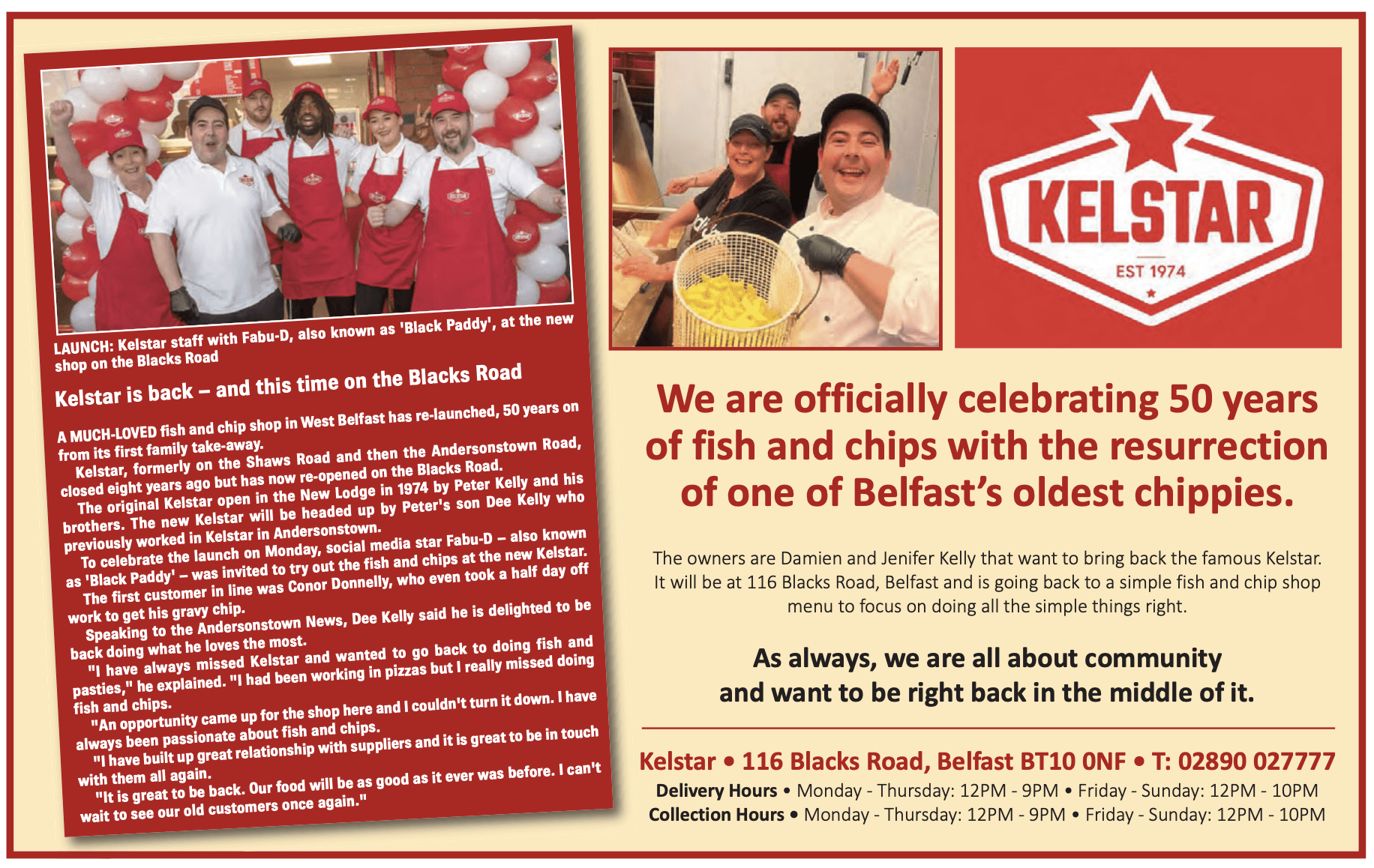 A MUCH-LOVED fish and chip shop in West Belfast has re-launched, 50 years on from its first family take-away.