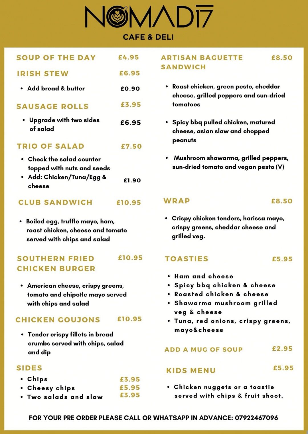 Nomad 17 opens from 10am-4pm Monday to Saturday, serving artisan tea and coffee, freshly made sandwiches, wraps and baguettes, soup of the day, a full salad bar and a selection of tasty traybakes and treats.